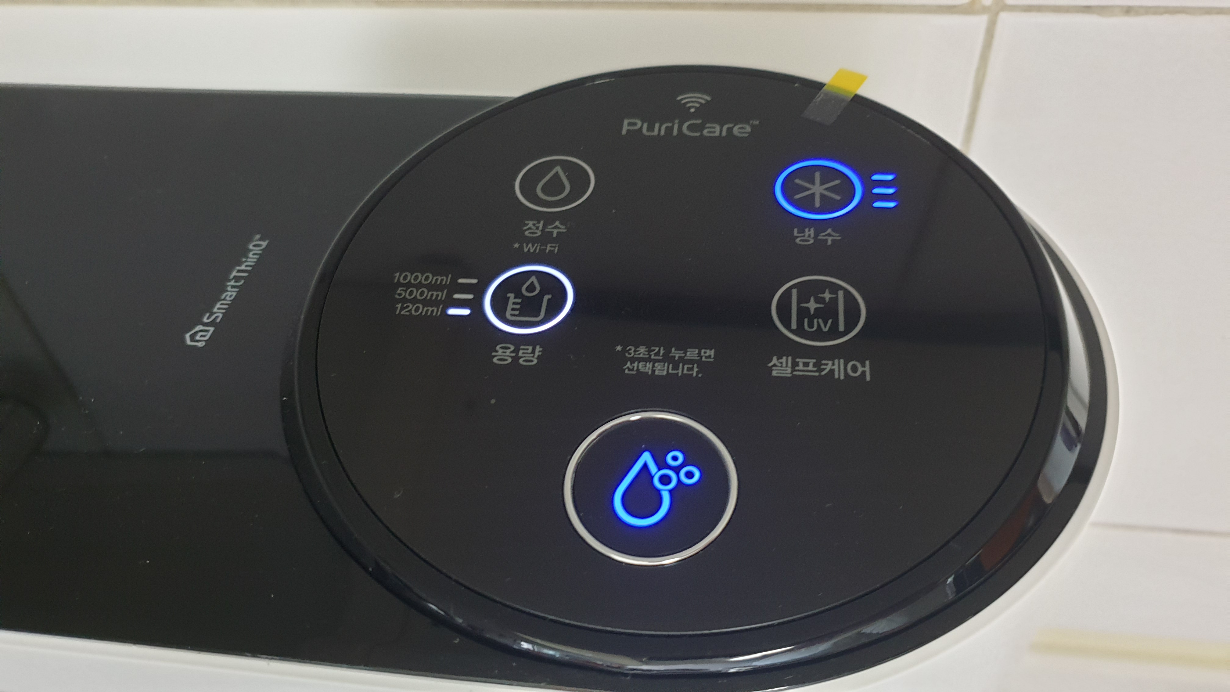 한번에 물나오는 용량은 120ml, 500ml, 1000ml 로 선택할 수 있다.