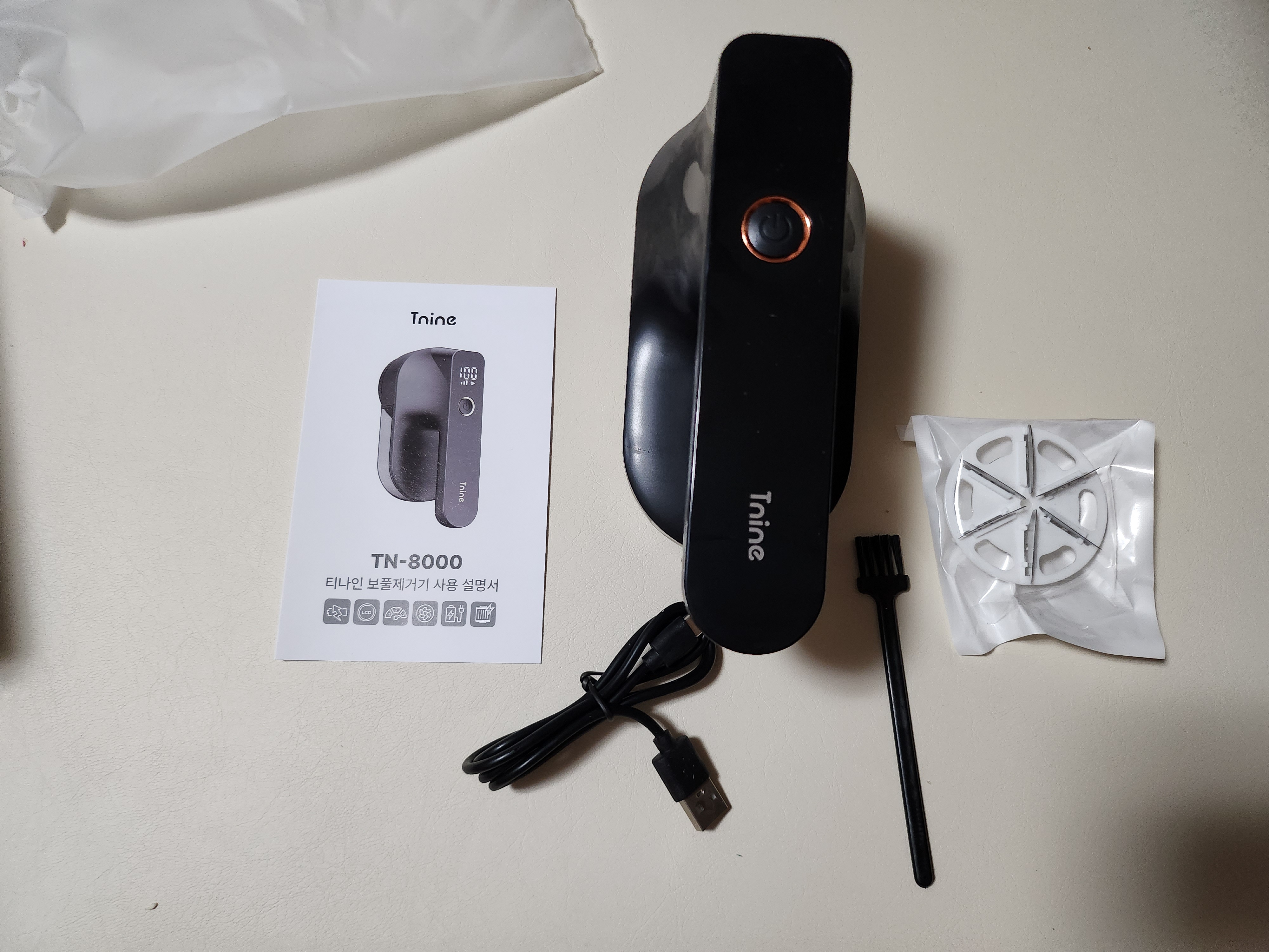 커버, 본체, 추가커터날, 청소솔, 전원케이블이 들어있습니다.