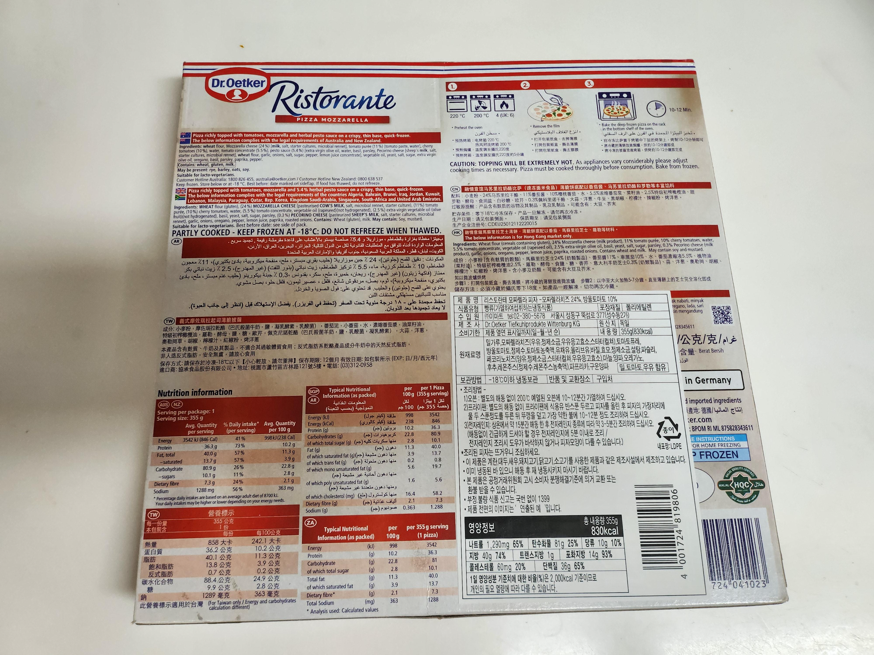 쓱닷컴에서 닥터오트커 리스토란테 마짜렐라 피자를 구매했습니다.