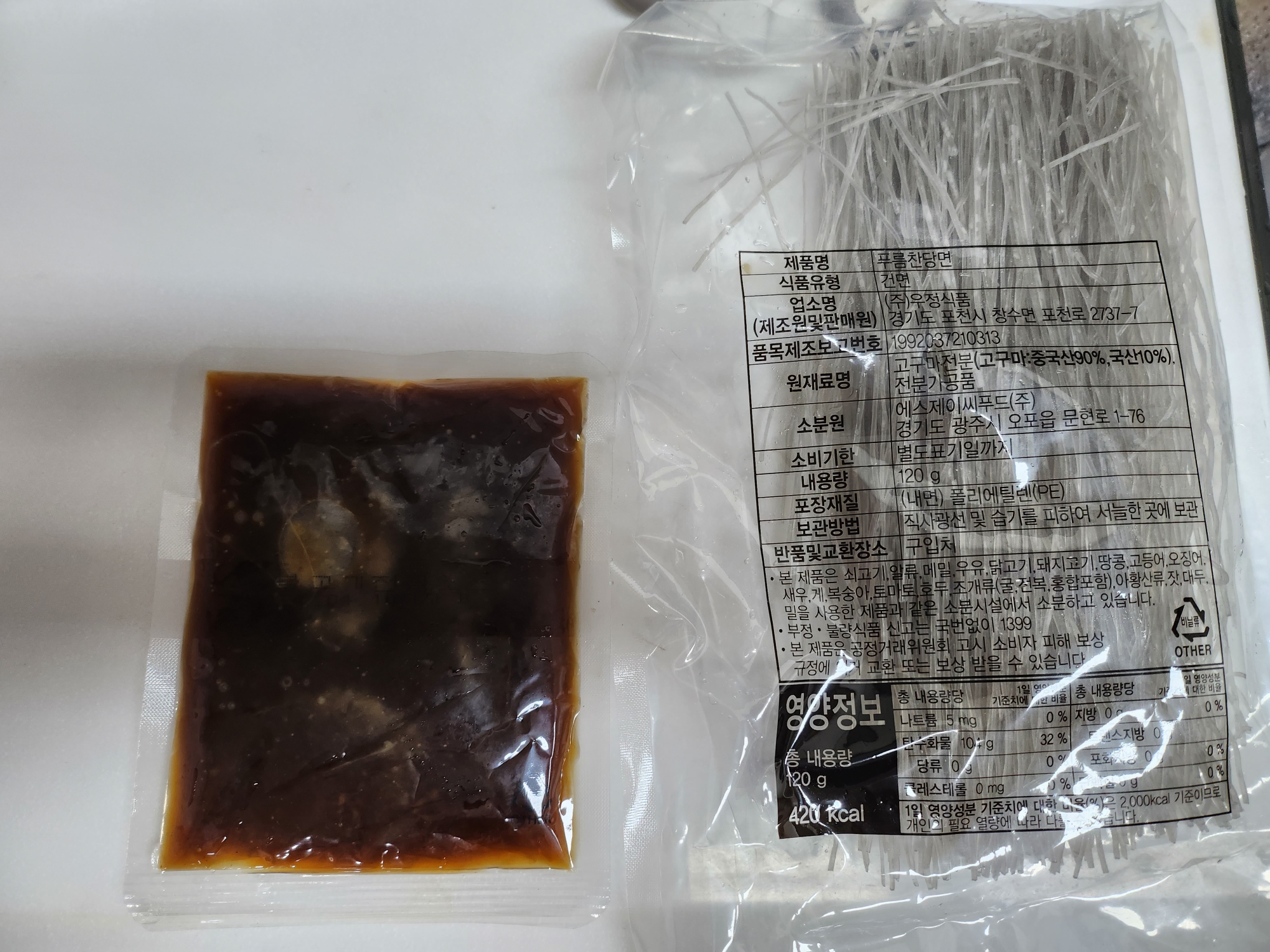 불고기 재료와 함께 당면과 양념장이 들어있습니다.
