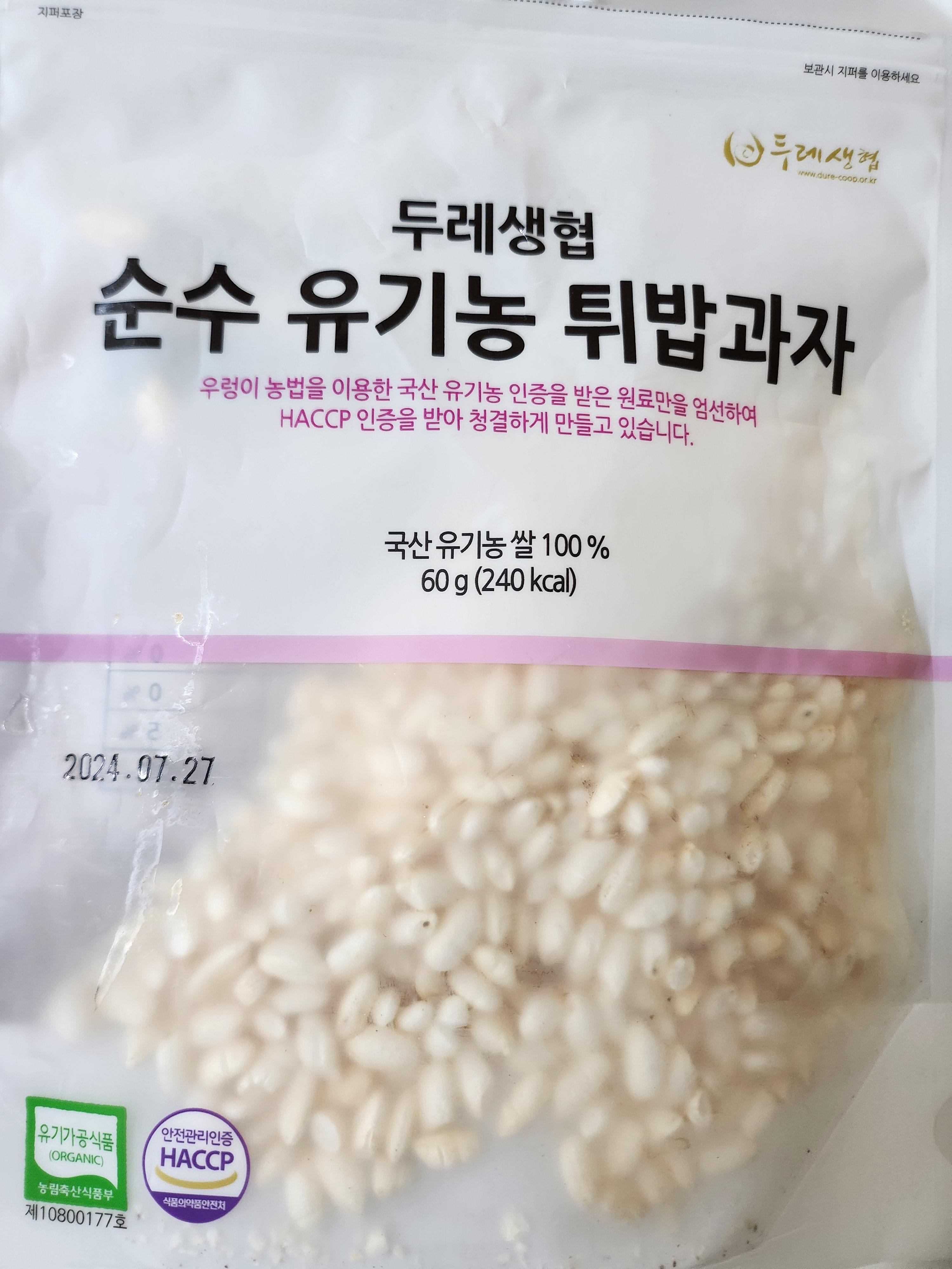 떡 뻥은 아이들이 먹는 제품이니만큼 유기농 쌀로 만든 것이 좋을 것 같습니다.