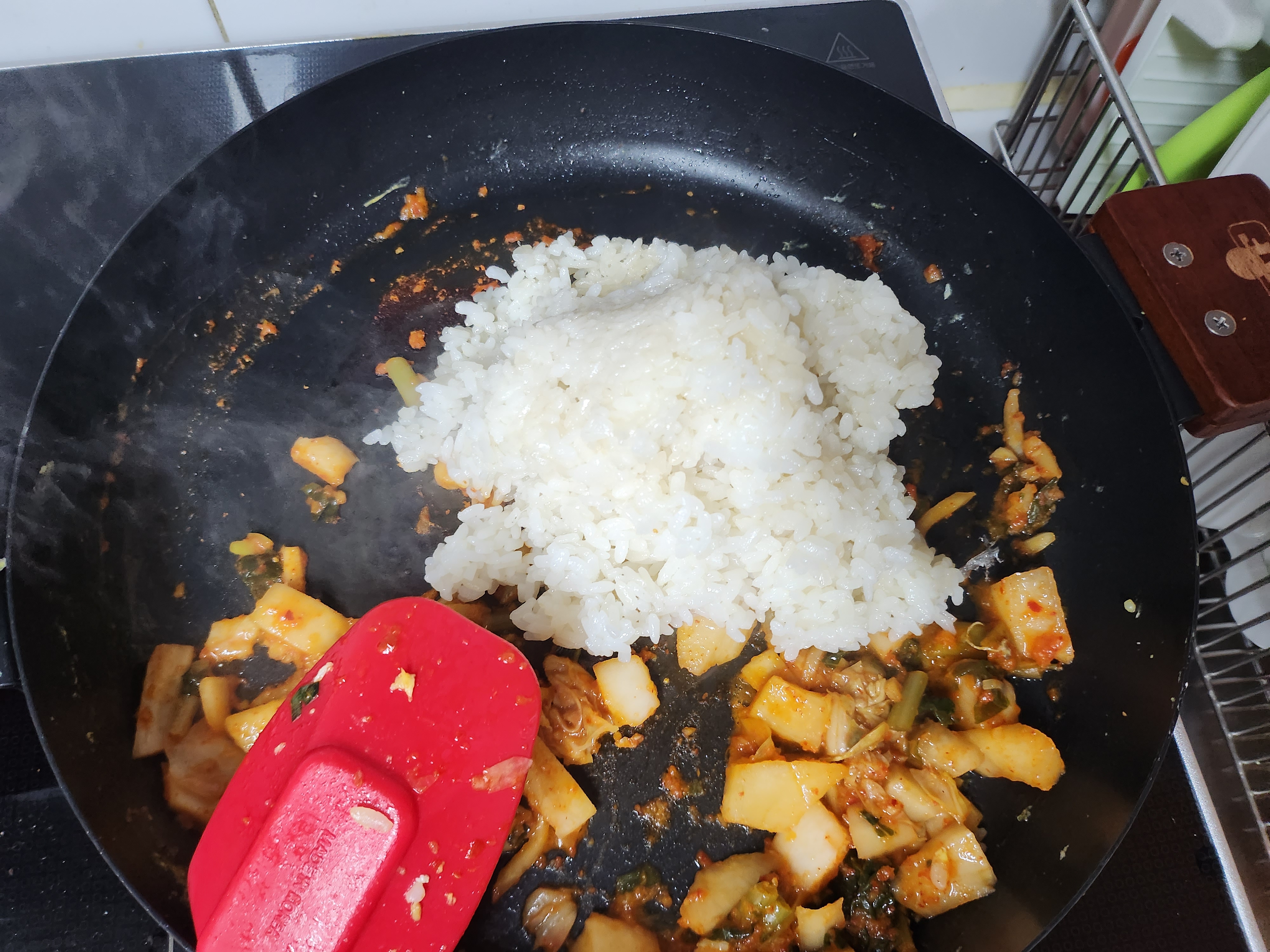 맛있는 깍두기 볶음밥이 완성되었습니다.