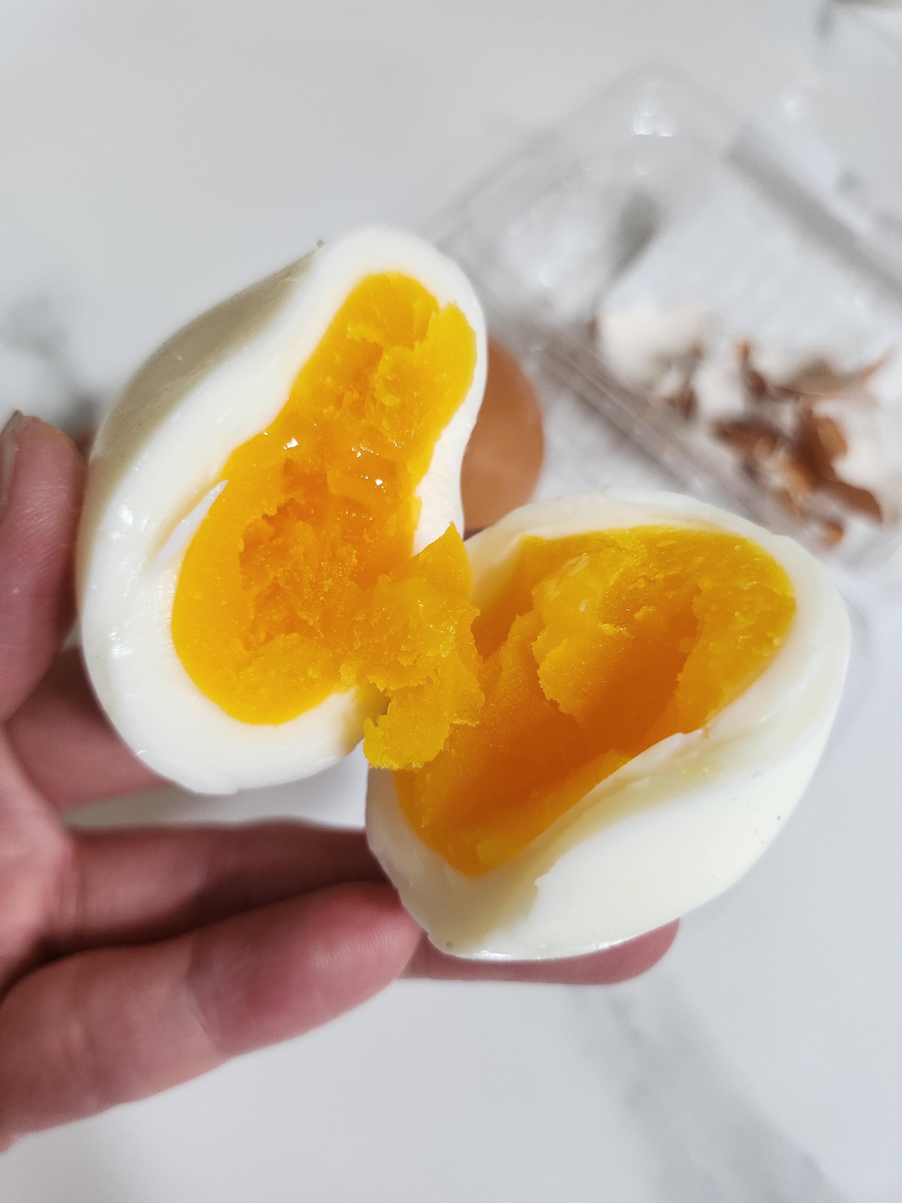 반숙 노른자에 소금을 뿌리지 않아도 이미 짭짜름한 것이 무척 신기하고 맛있었습니다.
