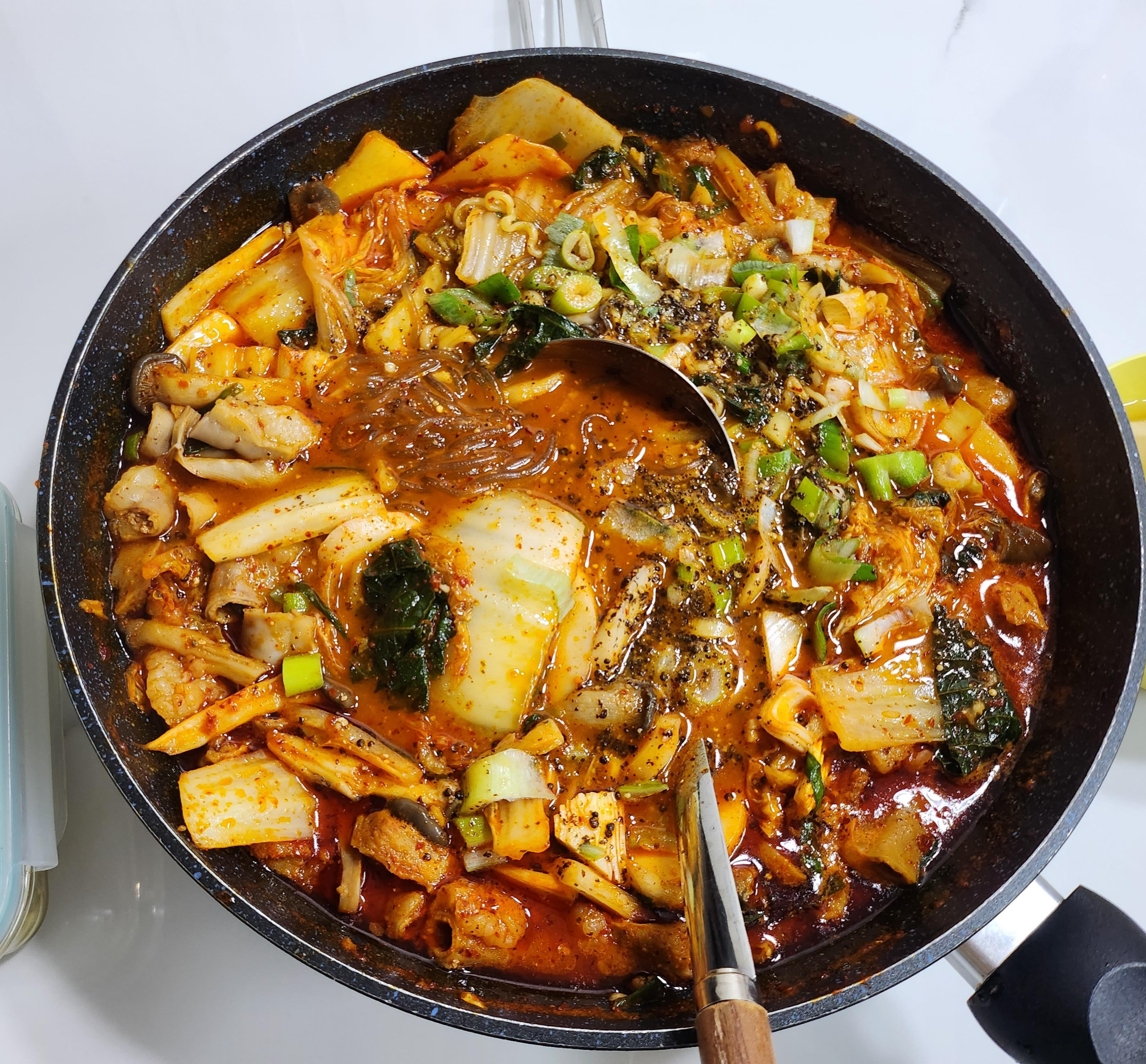 생각해 보니 마라탕과 비슷한 색깔에 맛도 비슷하면서 곱창전골의 고소함이 가득합니다.