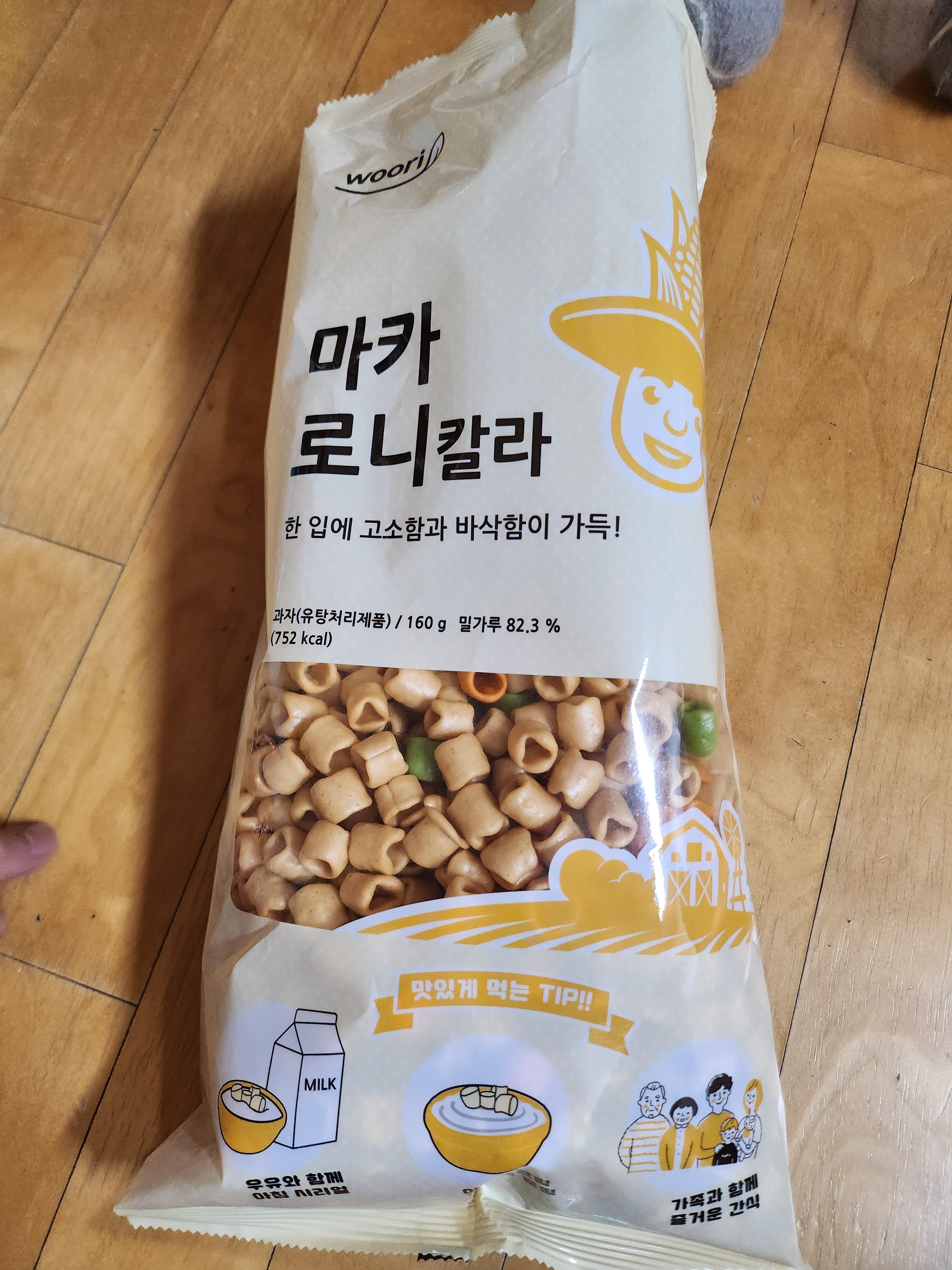 마카로니는 밀가루 반죽을 기름에 튀긴 과자입니다.