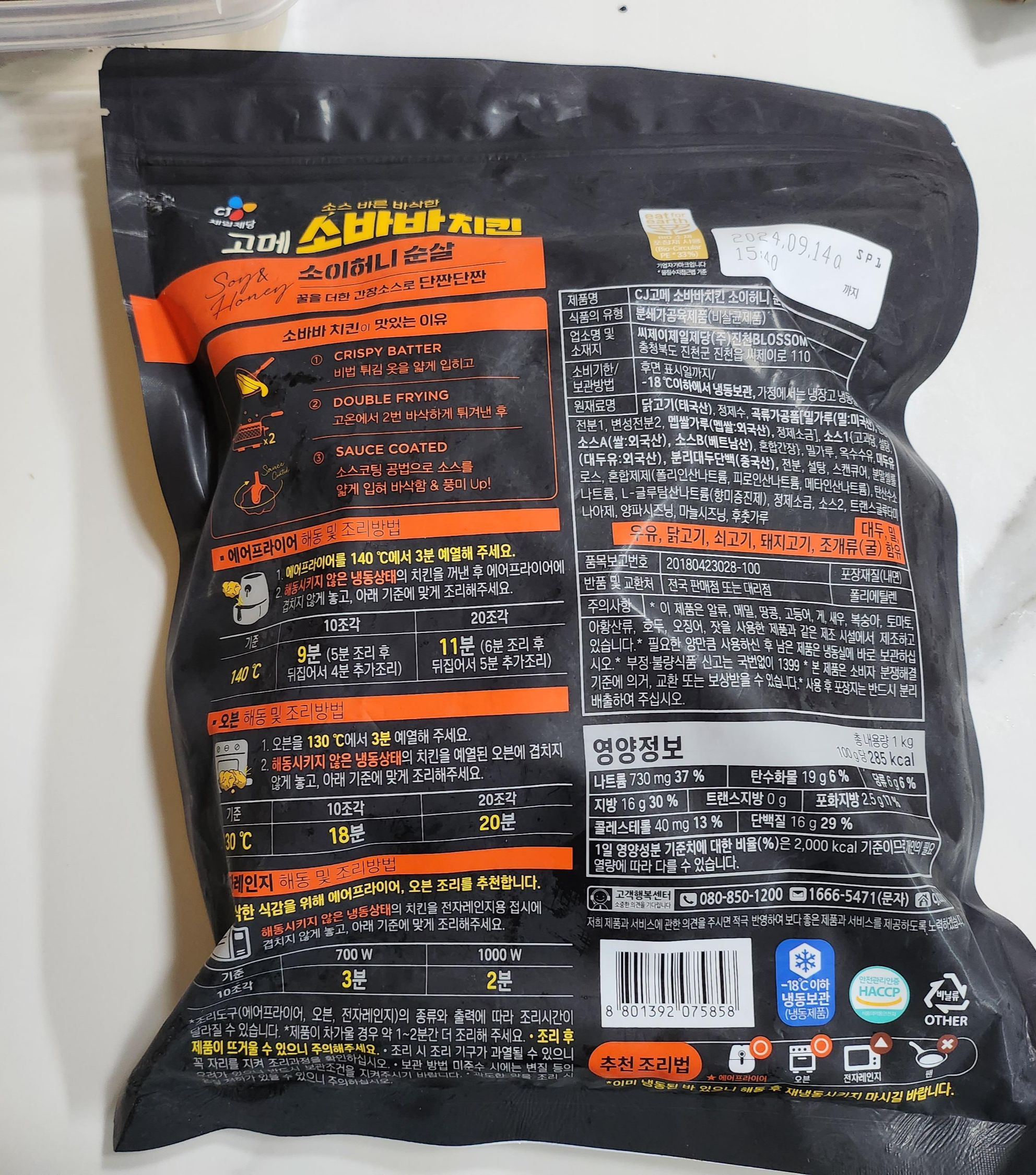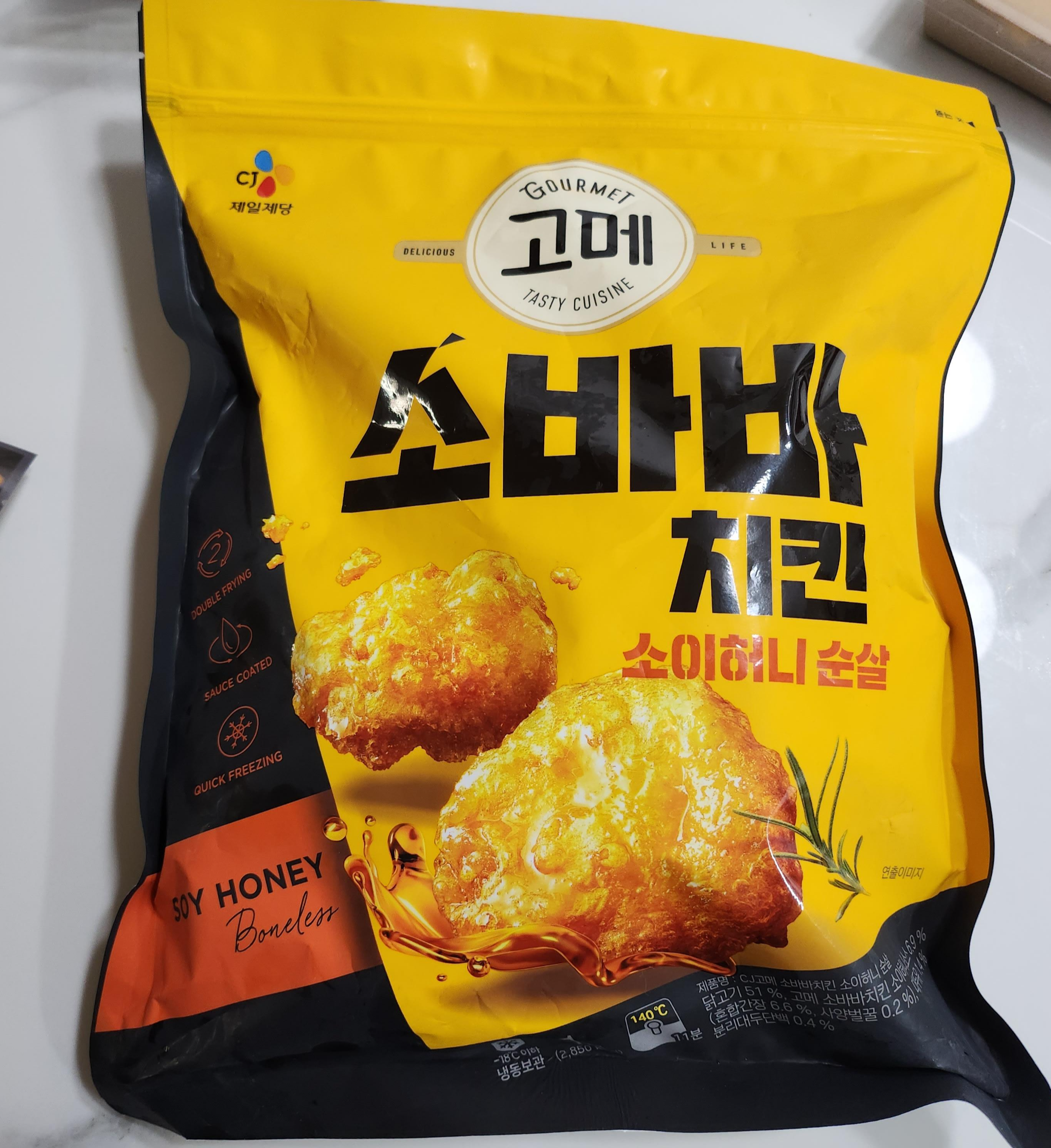 CJ 제일제당에서 만든 고메 소바바(소스 바른 바삭한) 치킨을 구매했습니다.