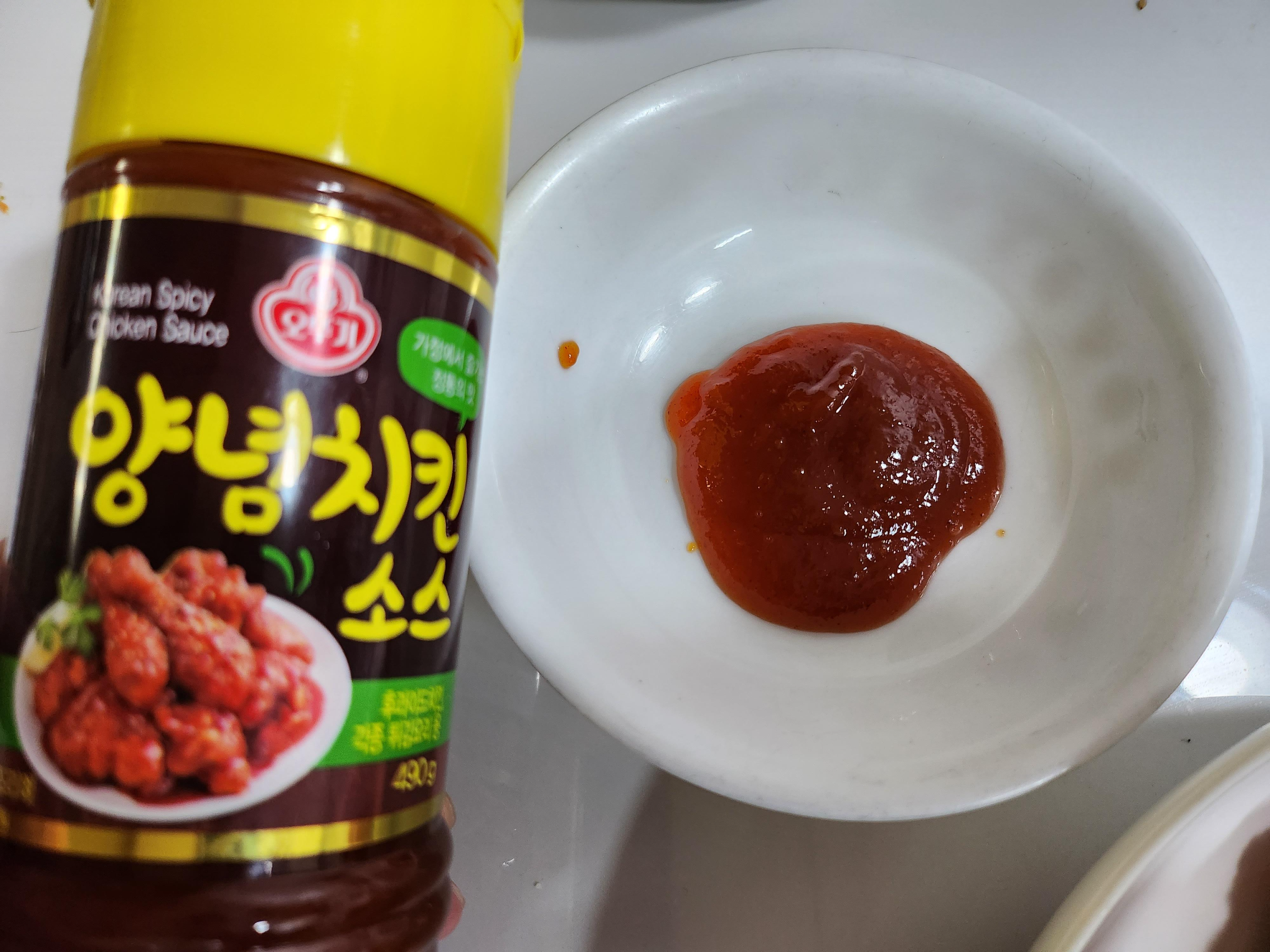 오뚜기에서 나오는 양념치킨소스를 찍어먹으니 색다르고 맛있네요.