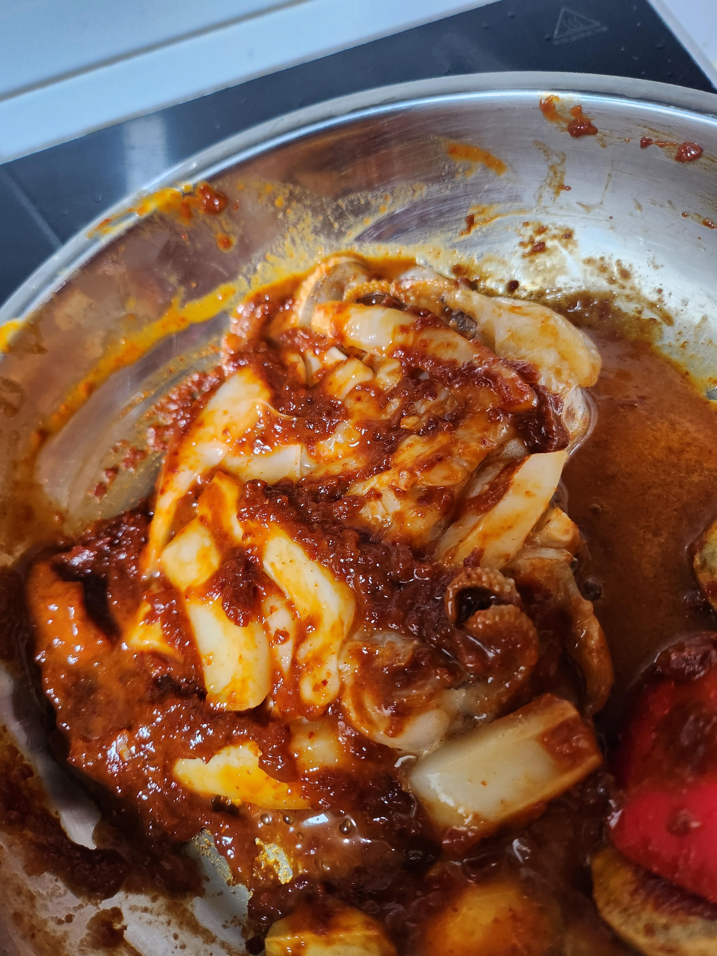 모모프렌즈의 홍대쭈꾸미를 먹었습니다. 간편하게 해동해서 먹는 냉동식품입니다. 쭈꾸미 삼겹살, 쭈꾸미 새우, 쭈꾸미 불고기 등 다양한 제품이 있습니다. 가장 기본 메뉴인 홍대쭈꾸미 300g 제
