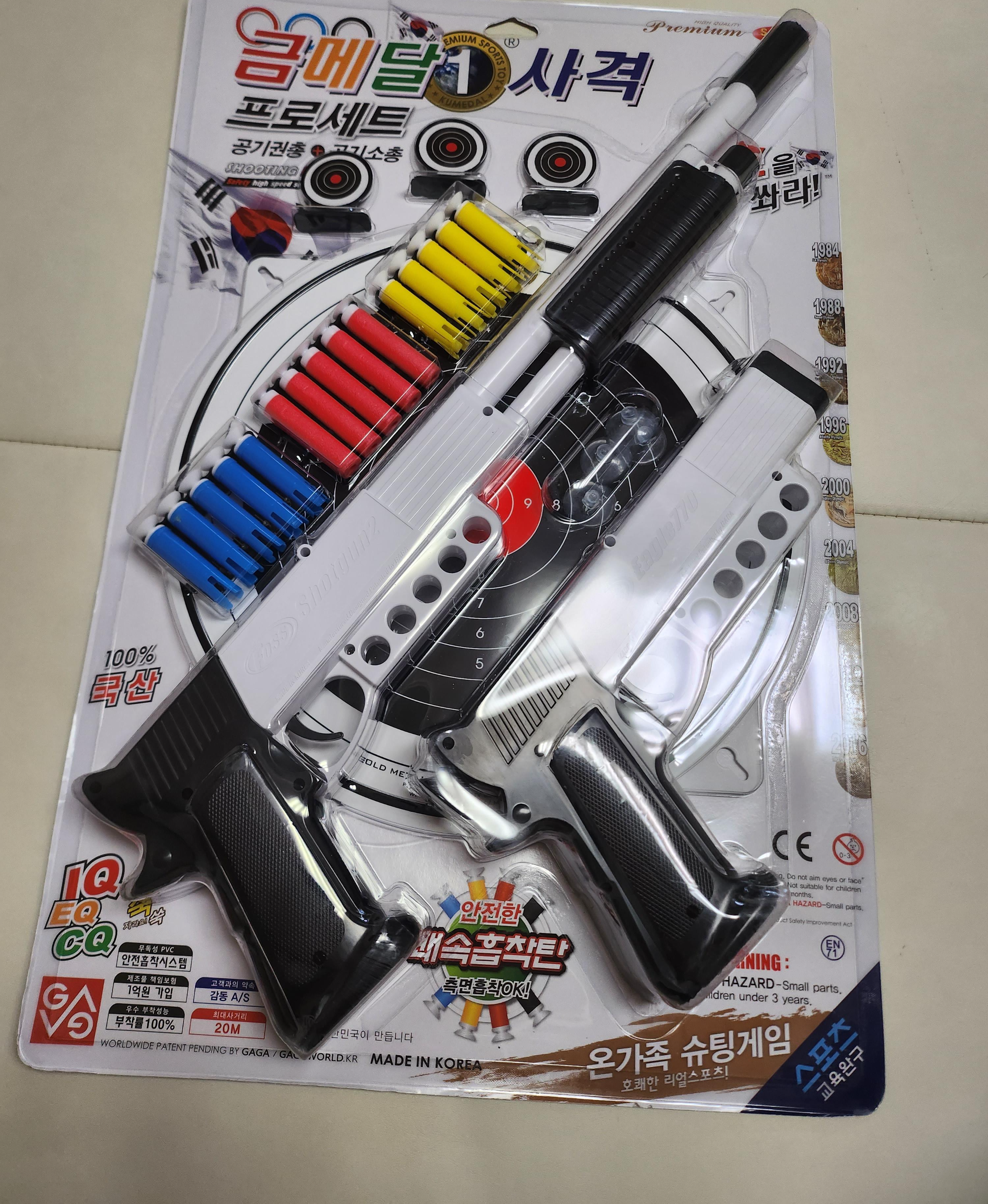 금메달 사격 장난감을 선물로 받았습니다.