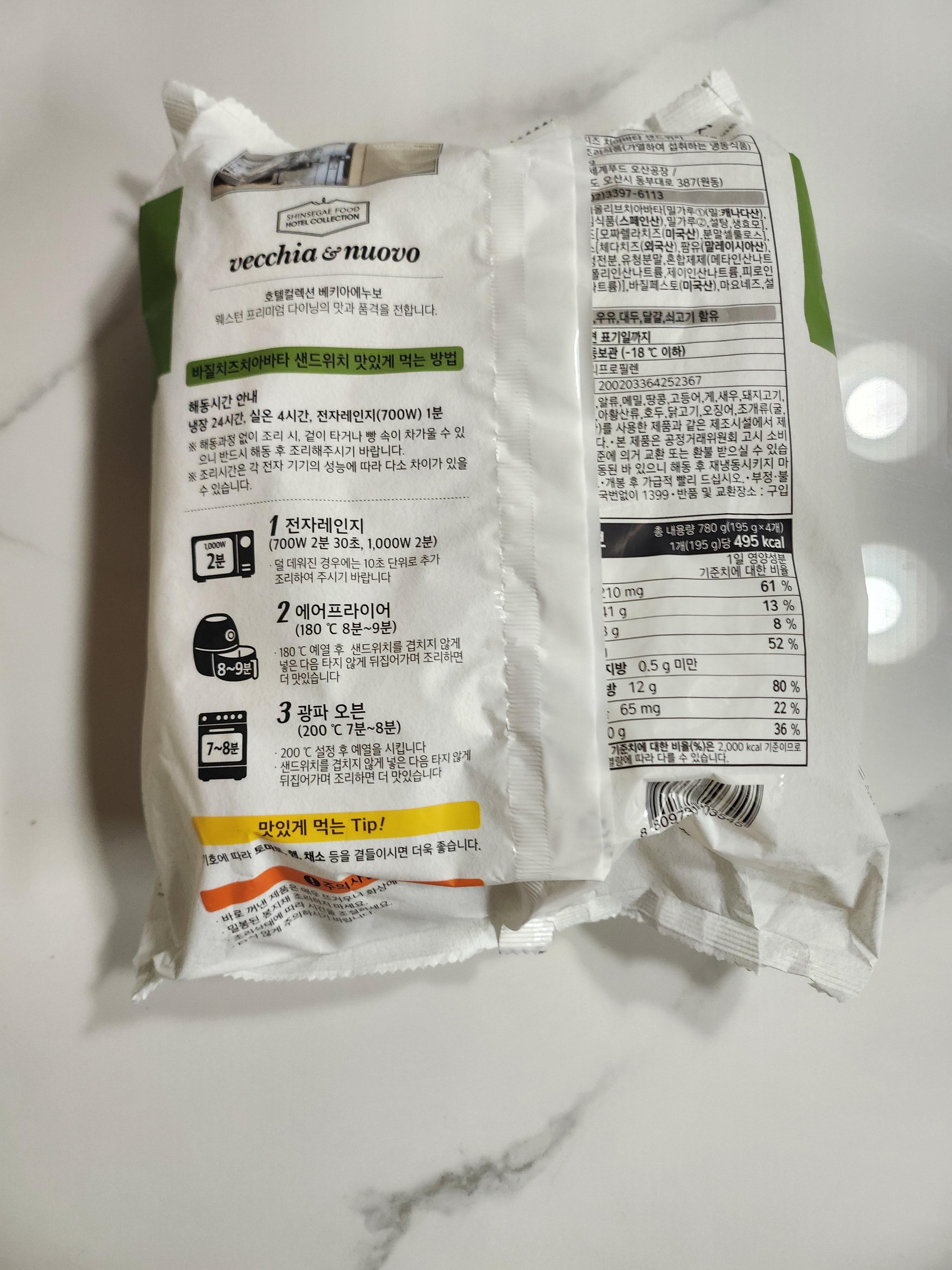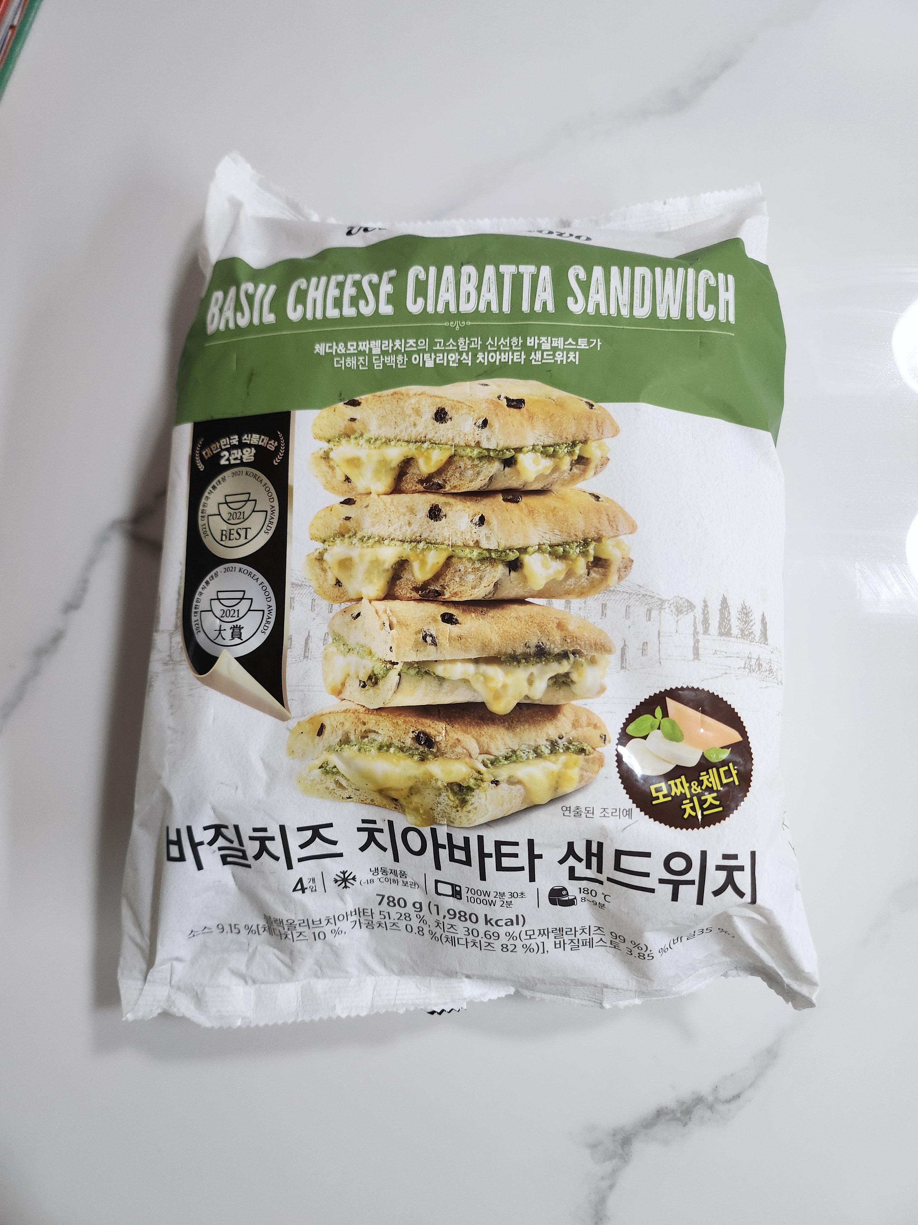 이마트 트레이더스에서 바질치즈 치아바타 샌드위치를 구매했습니다.