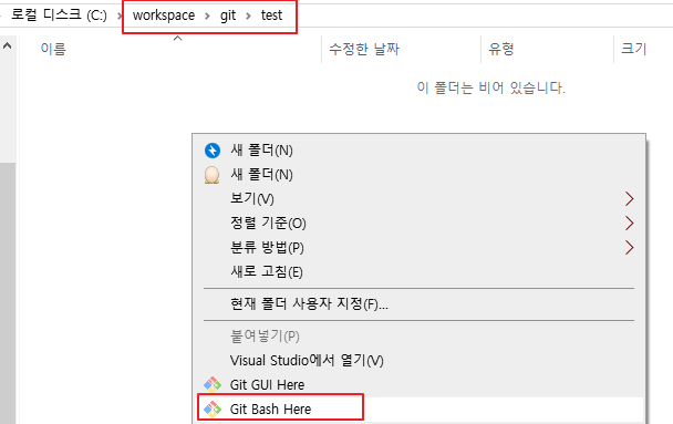 3. 탐색기에서 Git으로 관리할 폴더로 이동합니다.