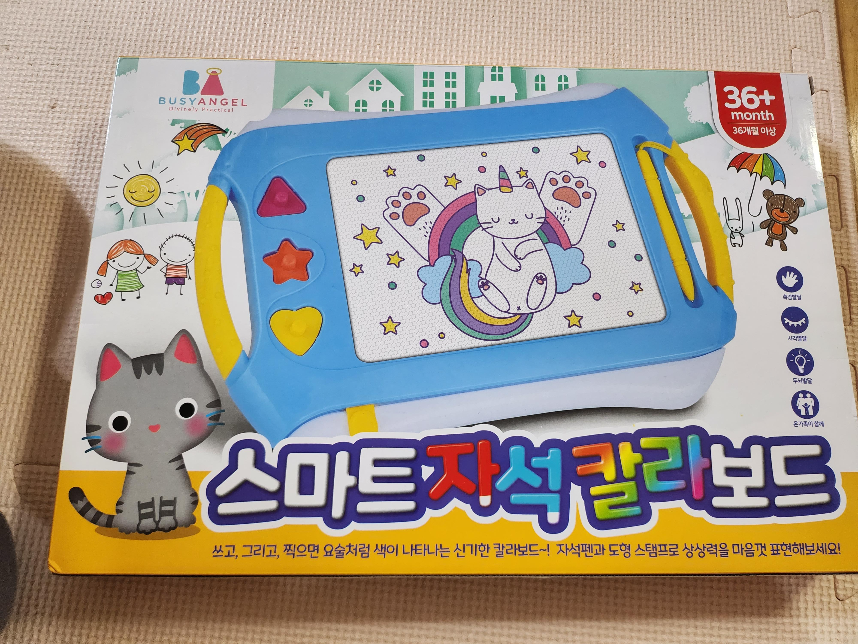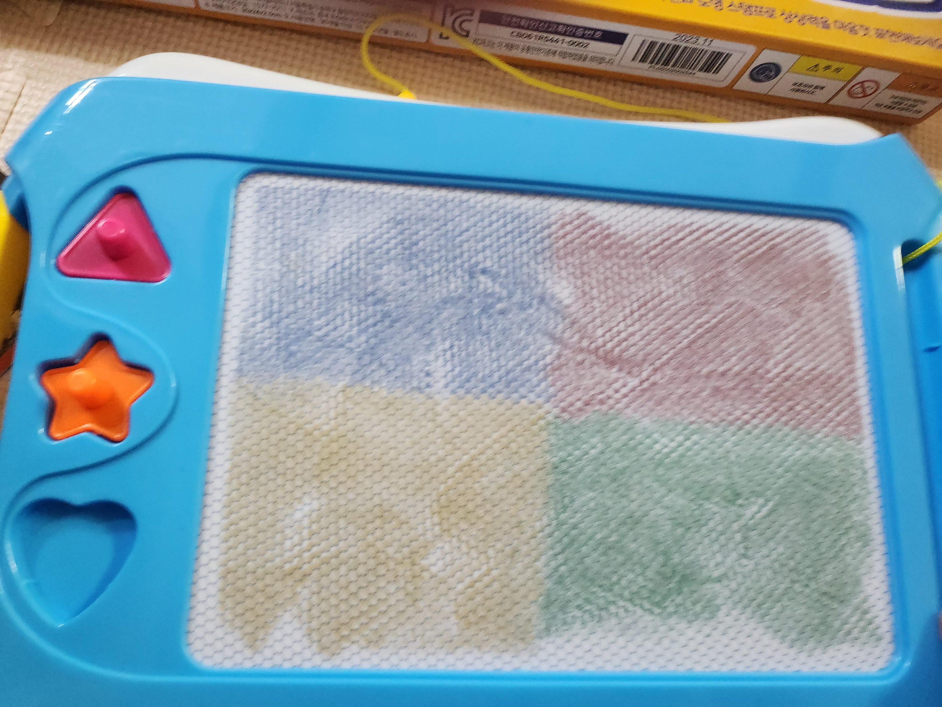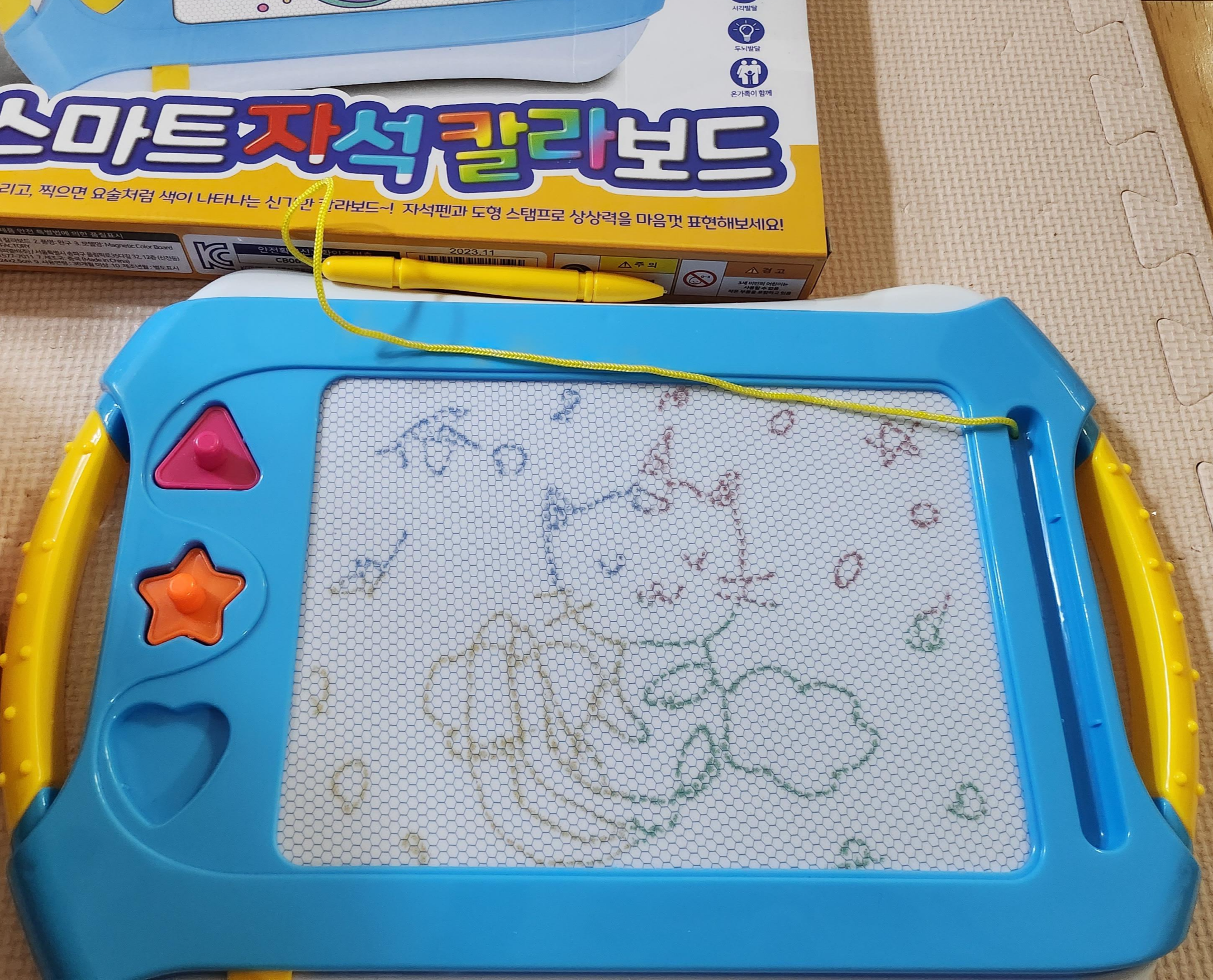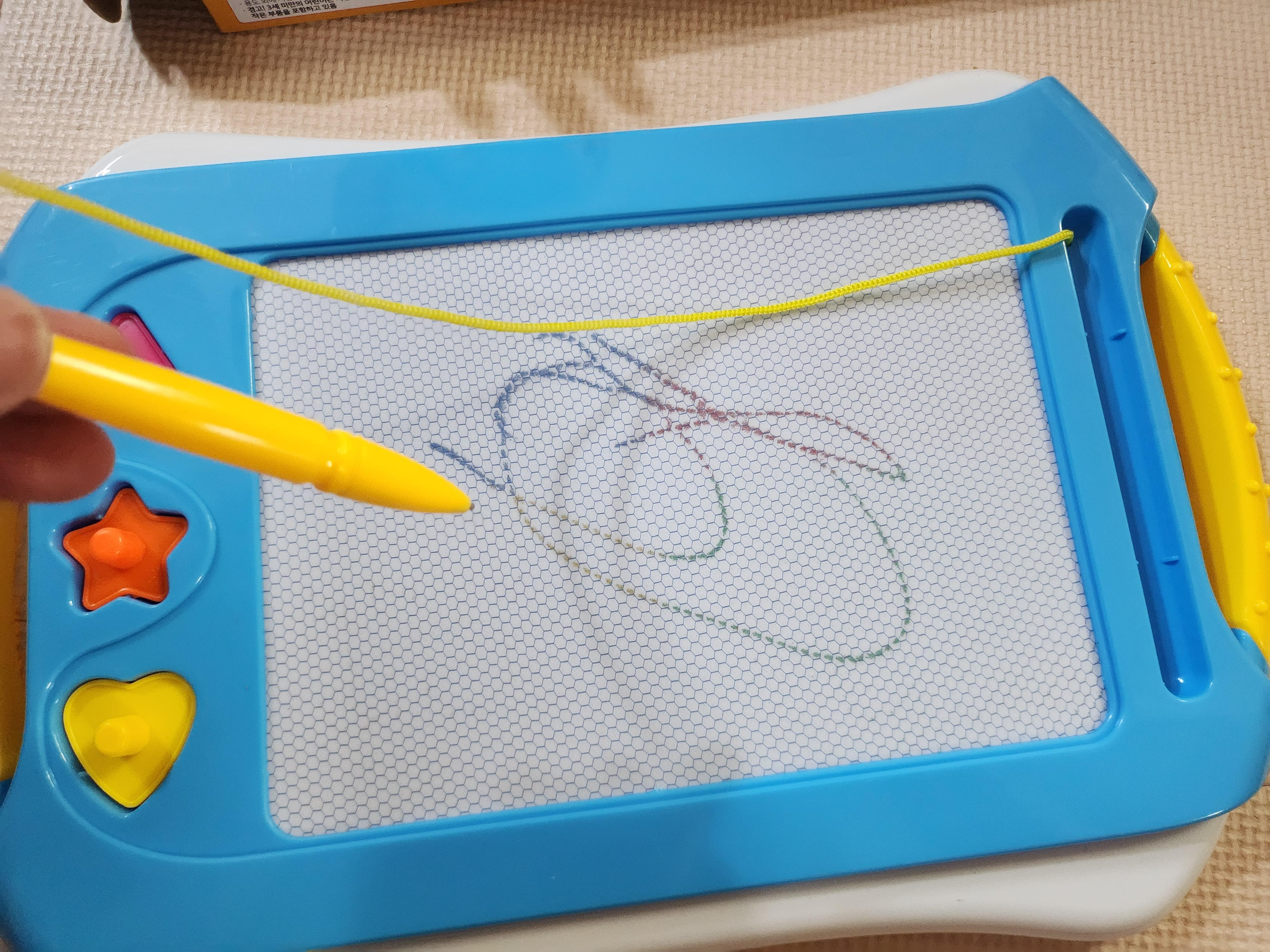 펜과 모양틀은 자석으로 되어있고 보드를 지날 때 철가루가 붙습니다.
