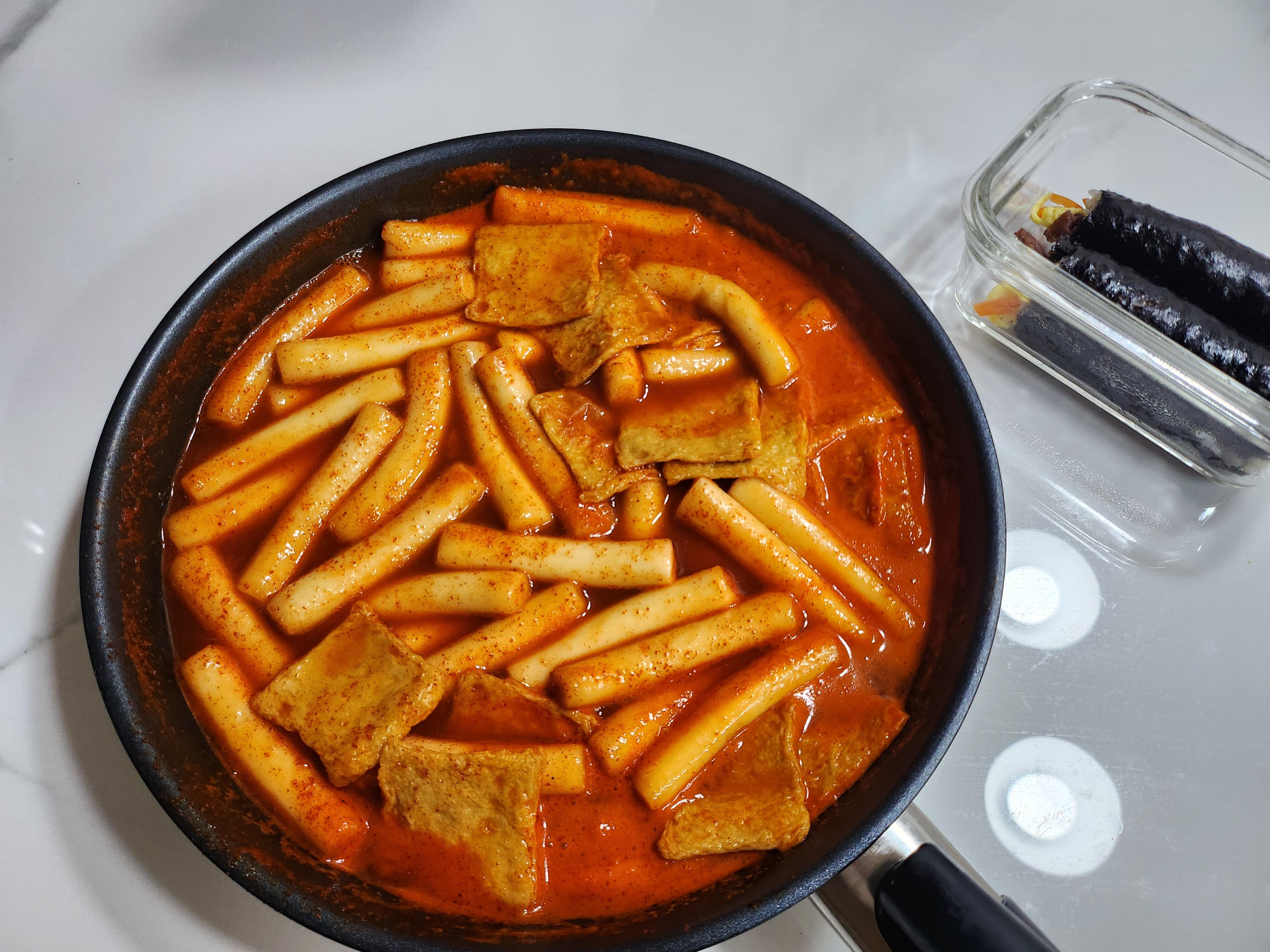 마침 김밥이 있어서 잘 어울리는 음식으로 떡볶이가 생각나서 먹었습니다.