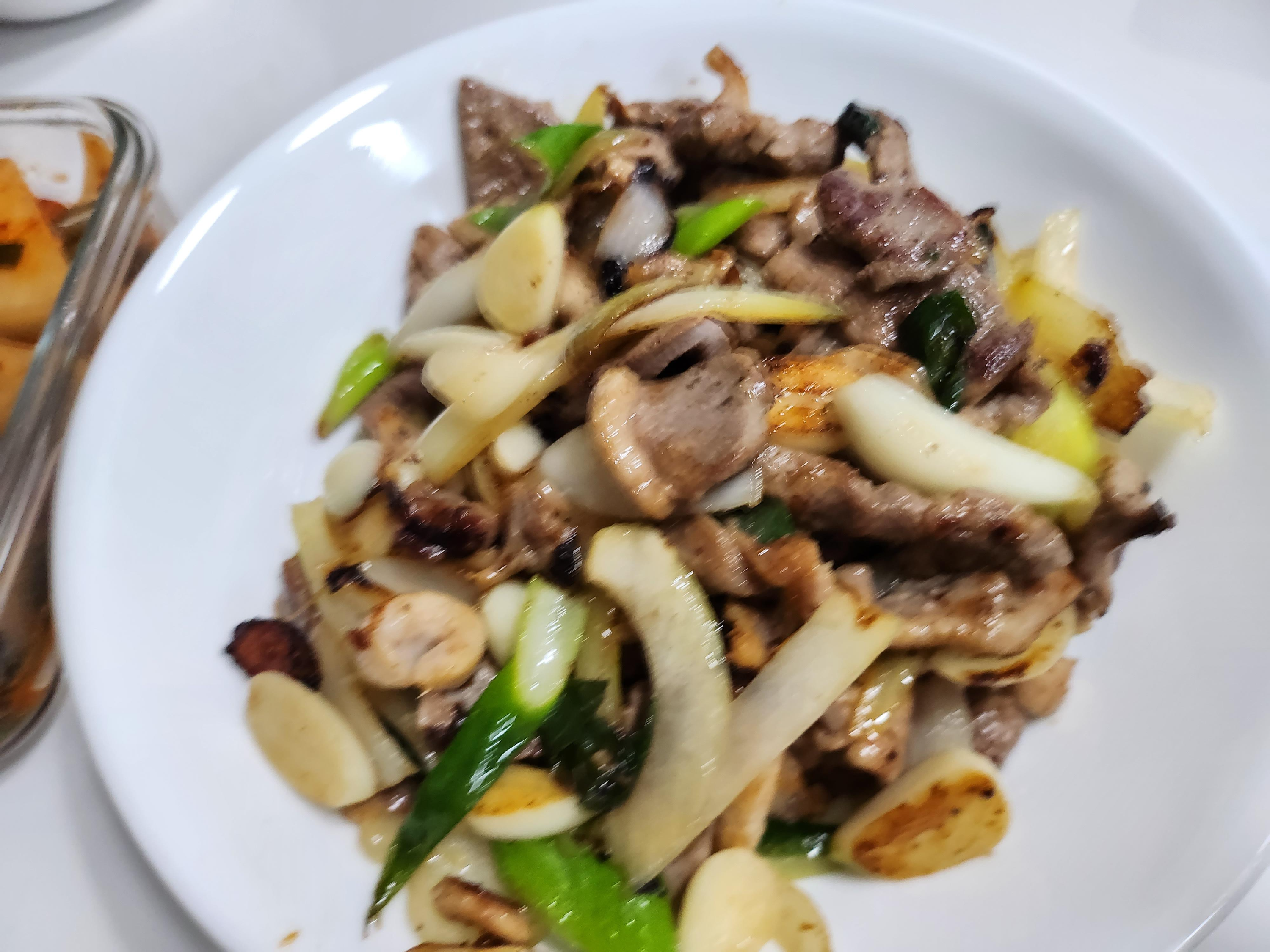 맛있는 오리고기 야채볶음이 완성되었습니다.