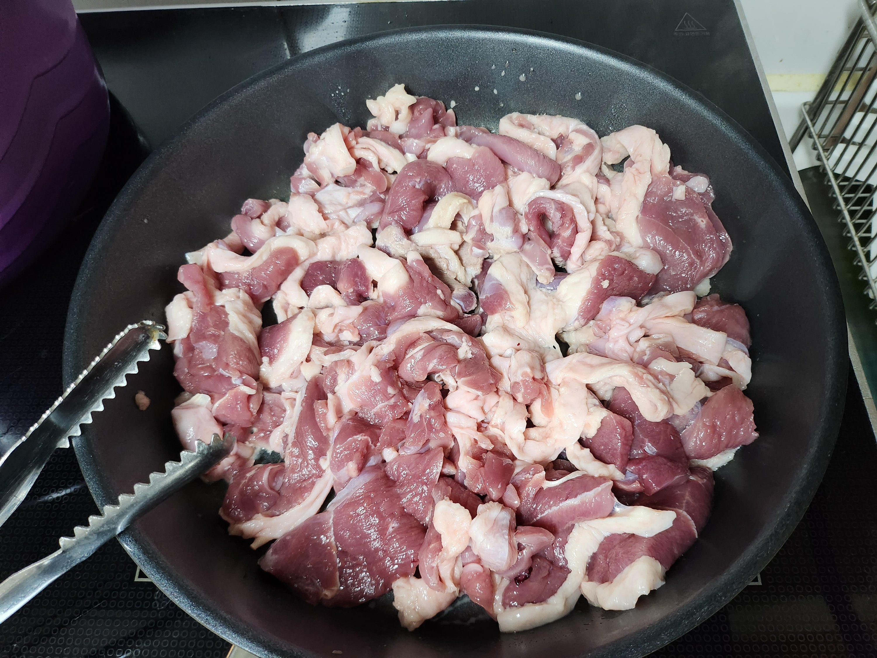 집에 생 오리고기가 있어서 야채와 함께 볶아 먹었습니다.