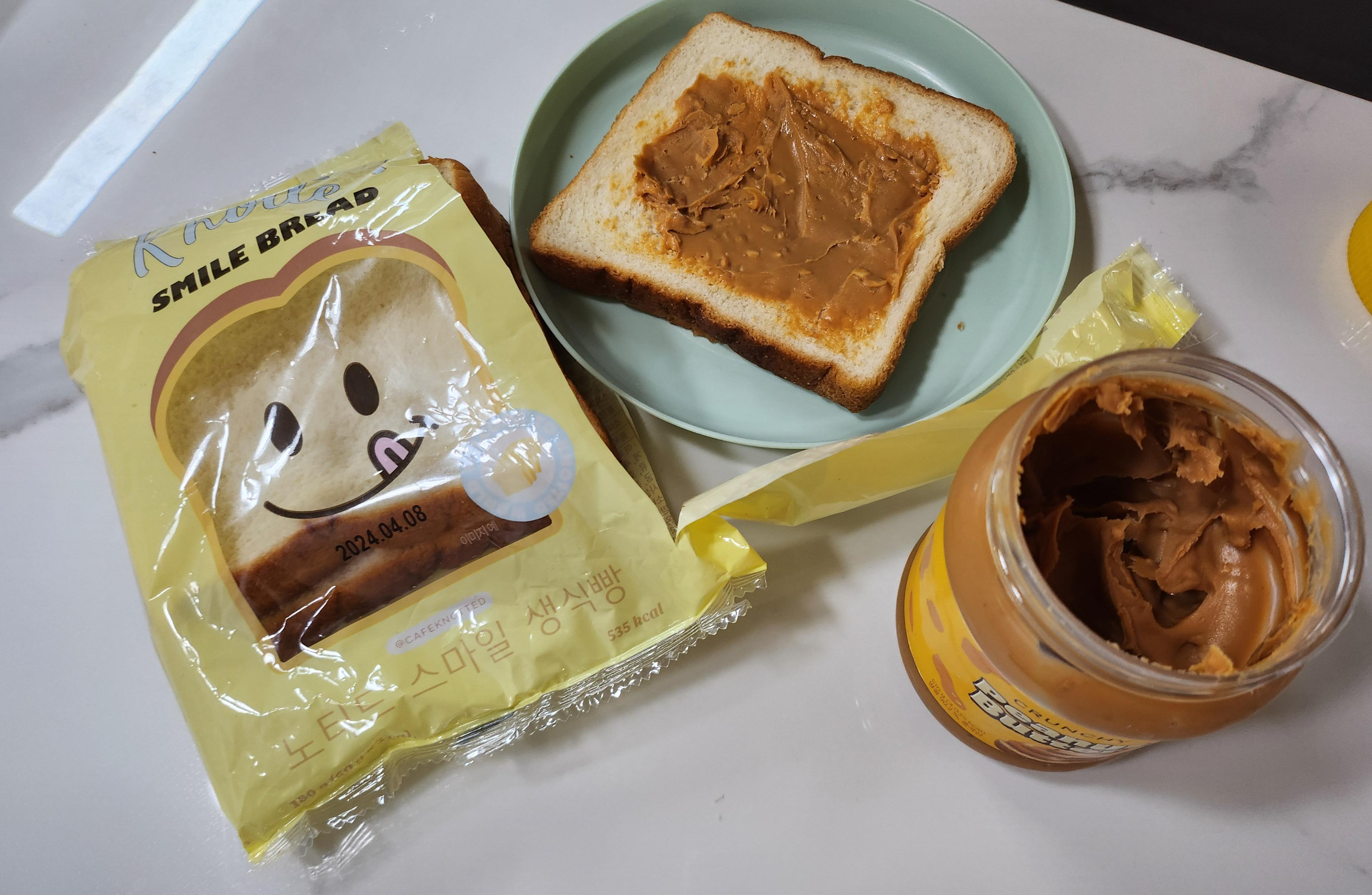 집에 노티드 식빵과 뚜레쥬르에서 구입한 땅콩버터가 있었습니다.