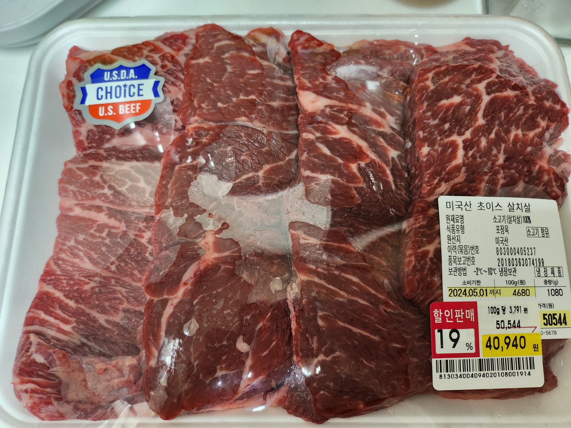 한우에서는 희소성 높은 특수부위에 속하지만 수입산 고기에서는 살치살이라 별도로 구분하지 않는 경우가 많아 가성비가 좋습니다.