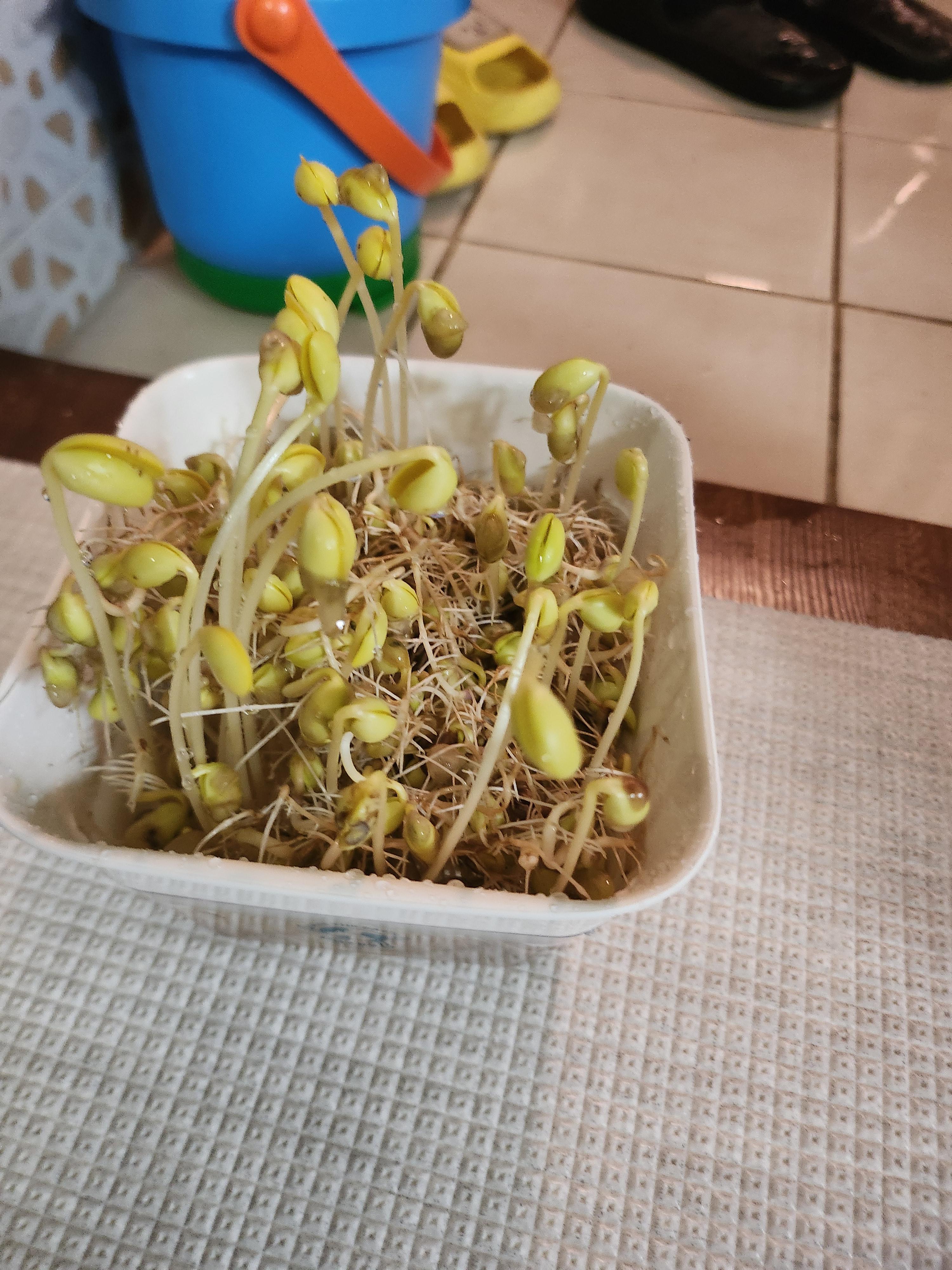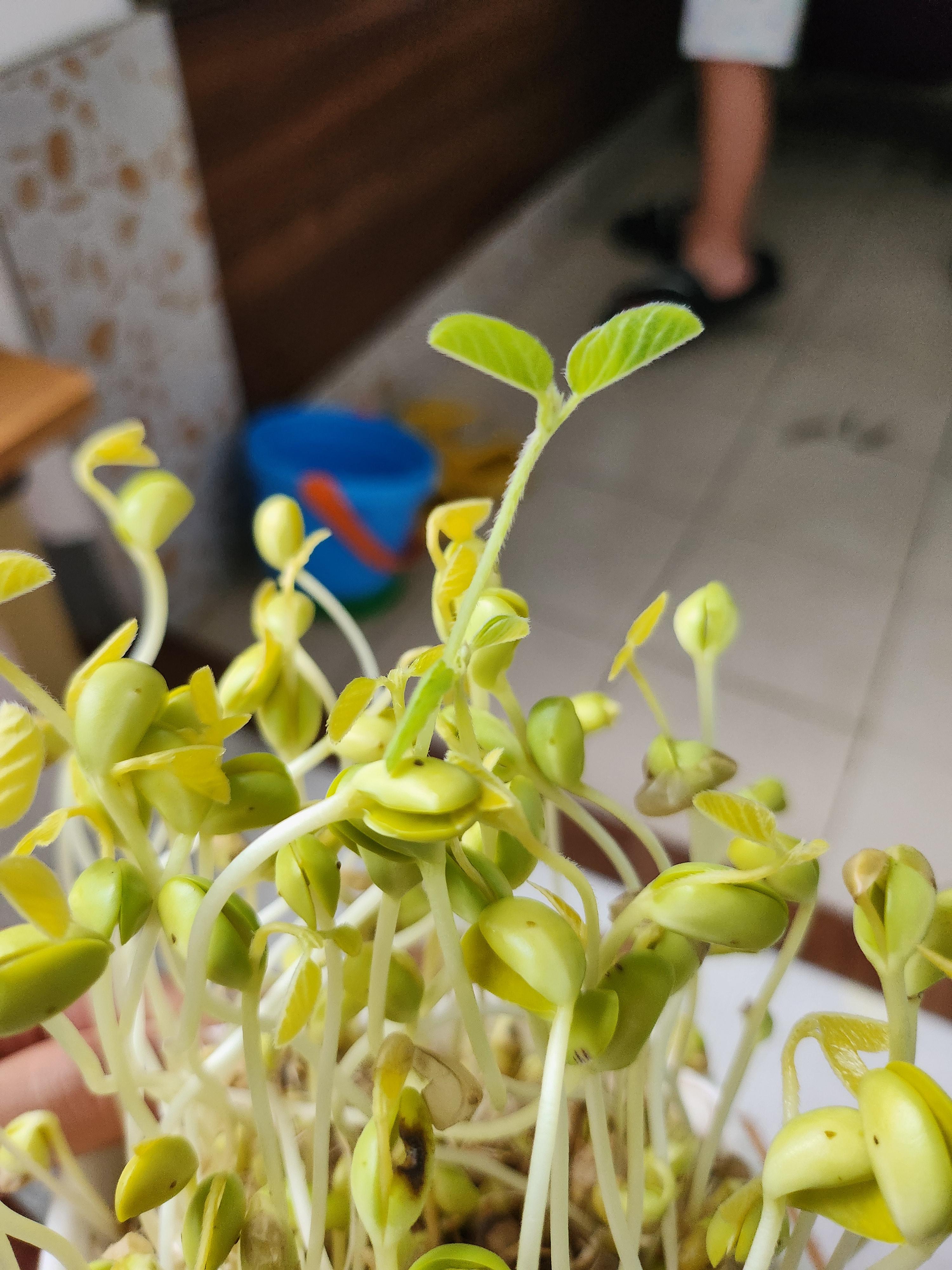 1. 콩을 물에 불려 싹을 틔웁니다,