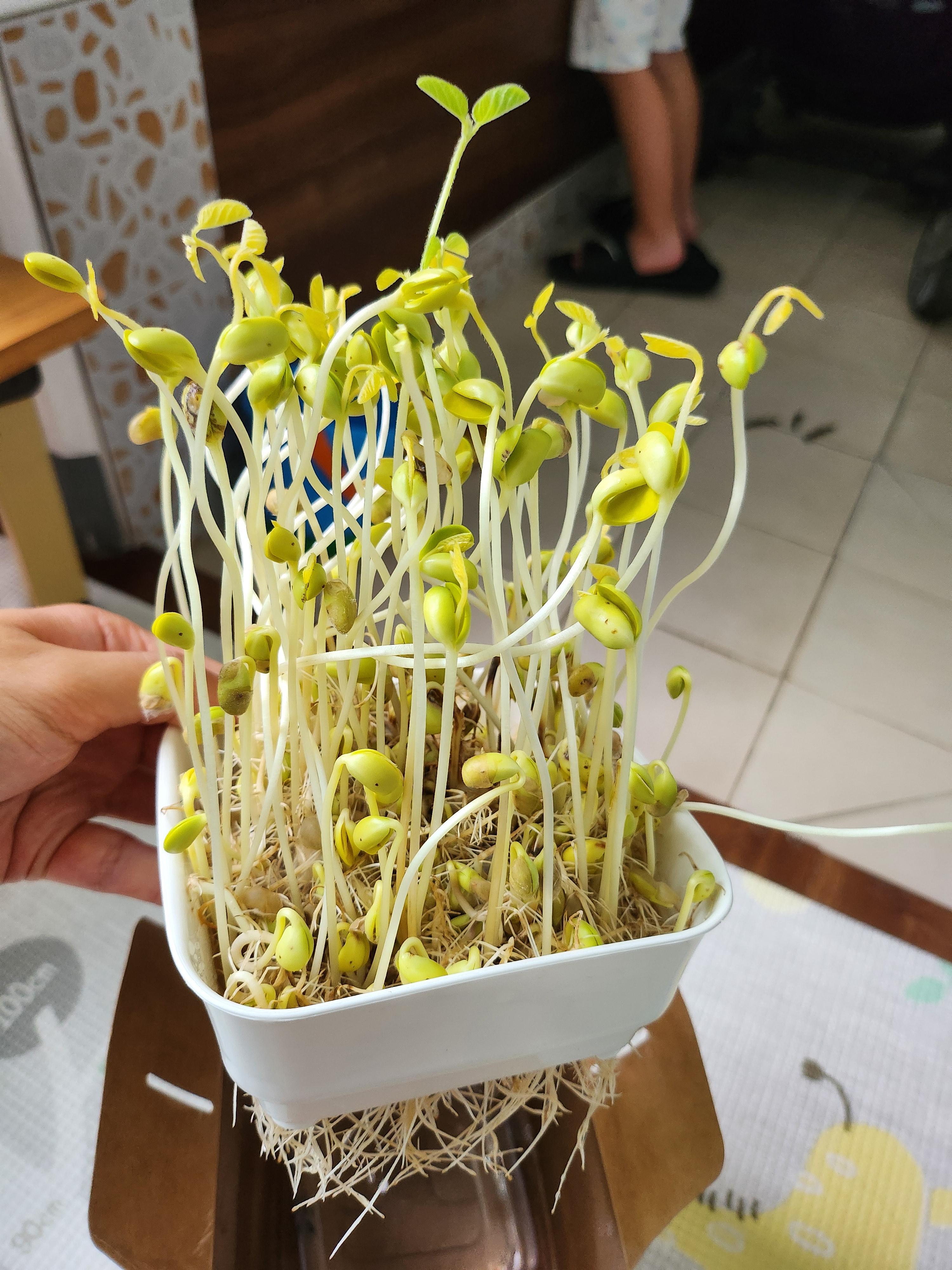 보통은 흔히 노란색 콩나물을 키울 때 유태 콩을 사용합니다.