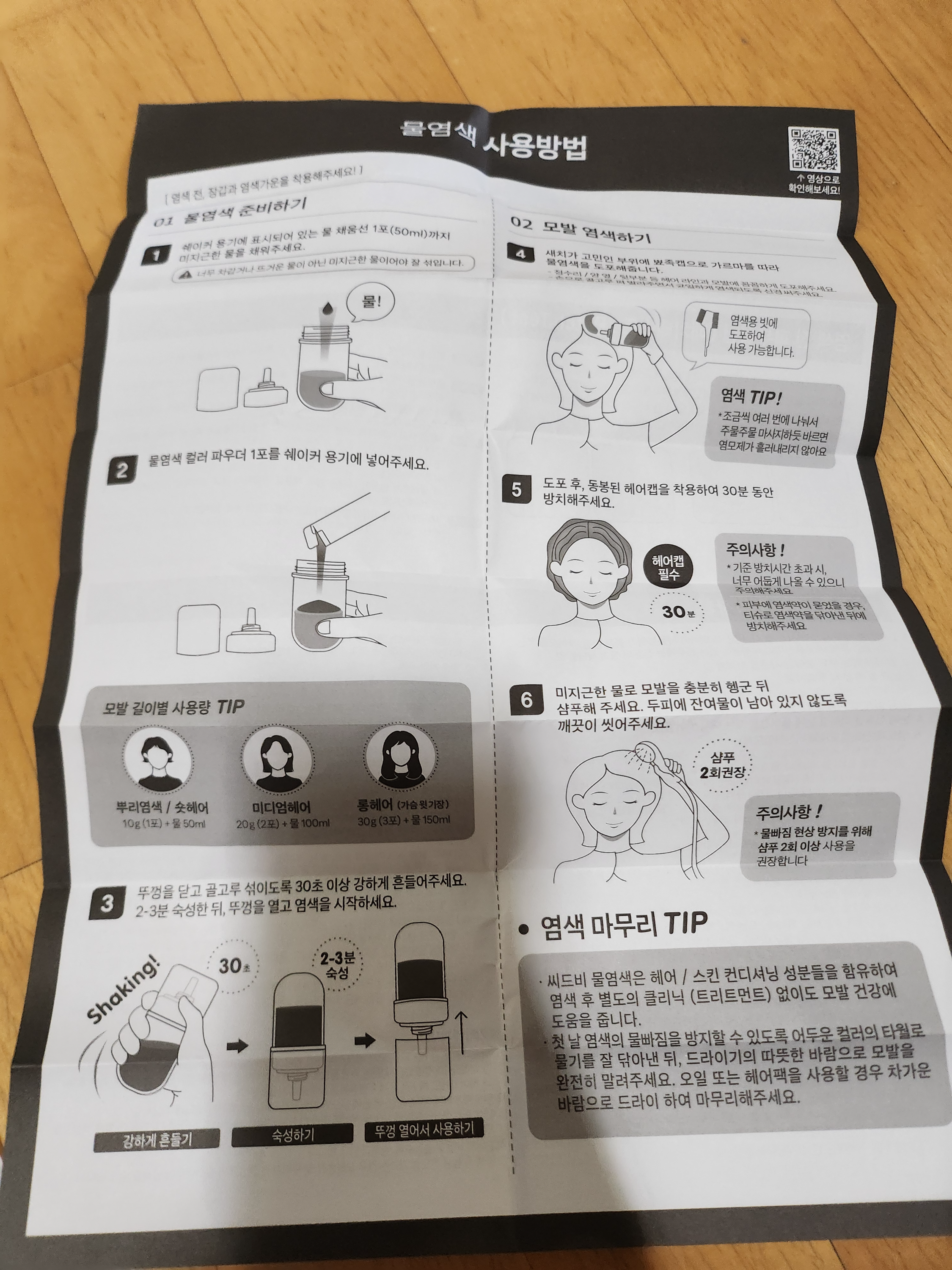 그러나 이 제품은 물과 가루를 섞어 염색약을 만듭니다.