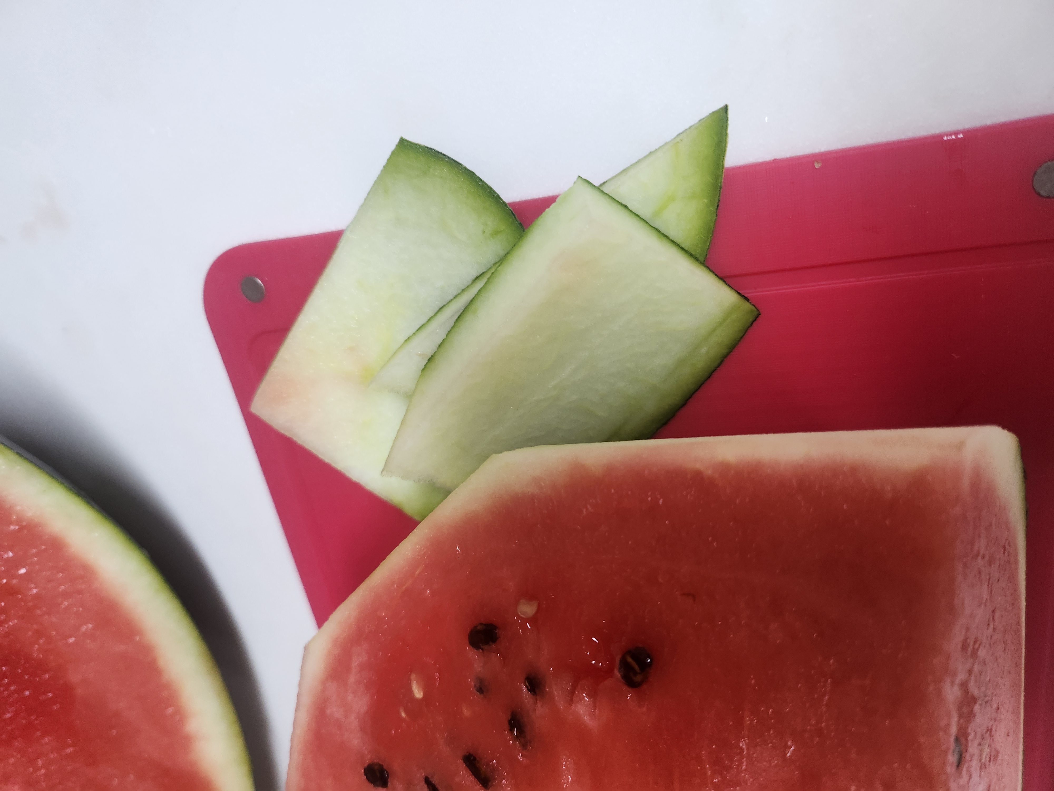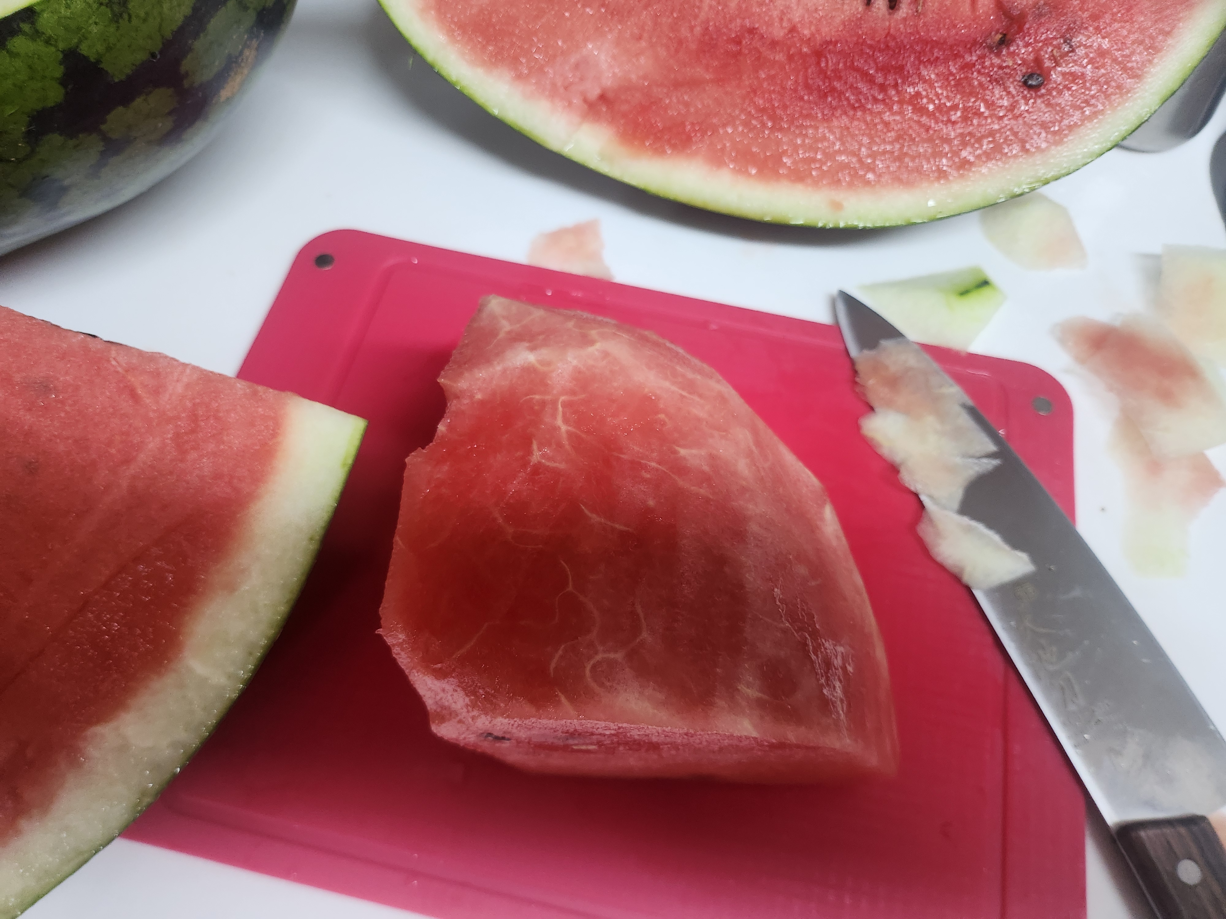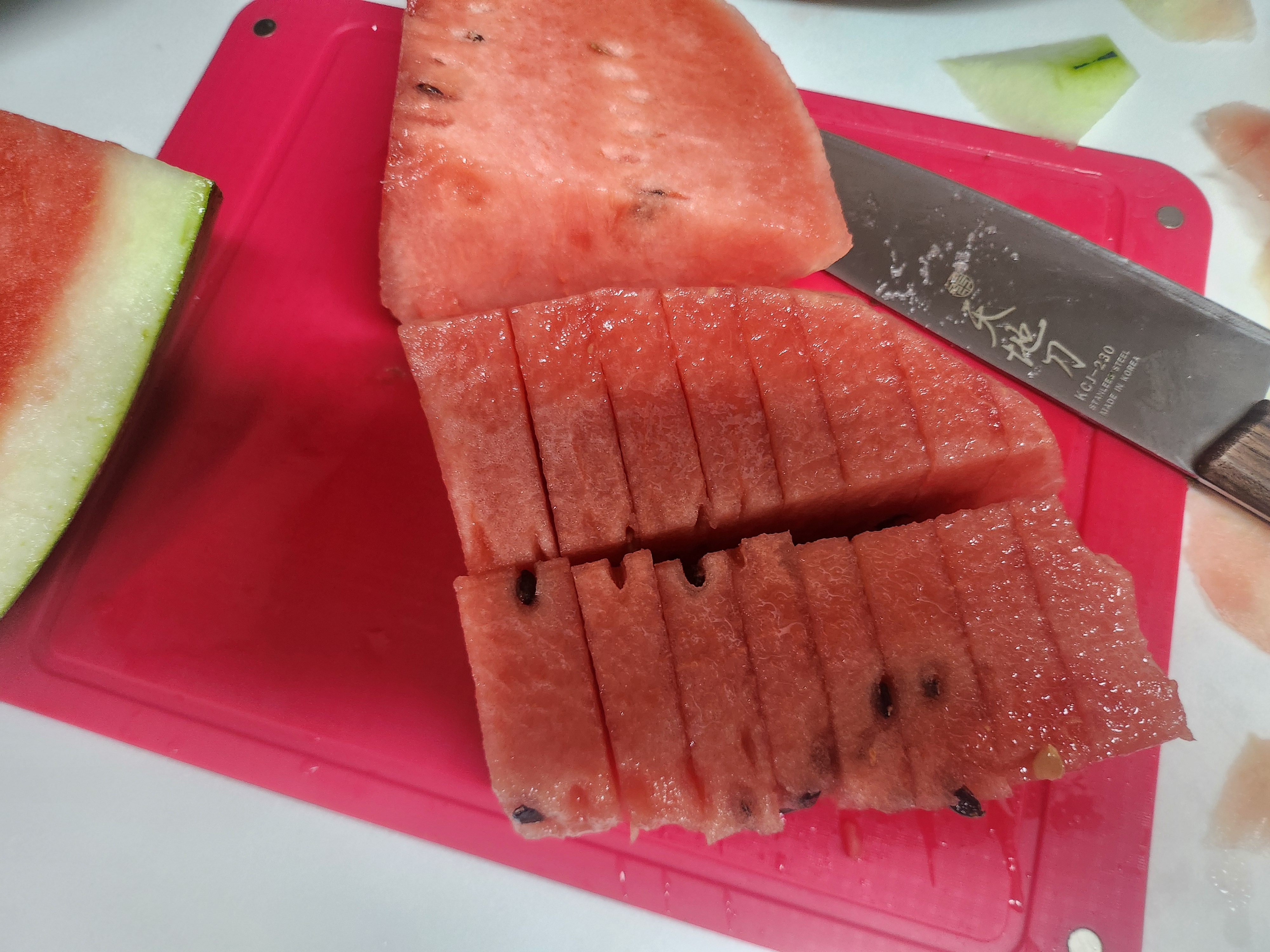 그리고 빨간 부분만 남으면 모양 그대로 먹기 좋은 크기로 자릅니다.