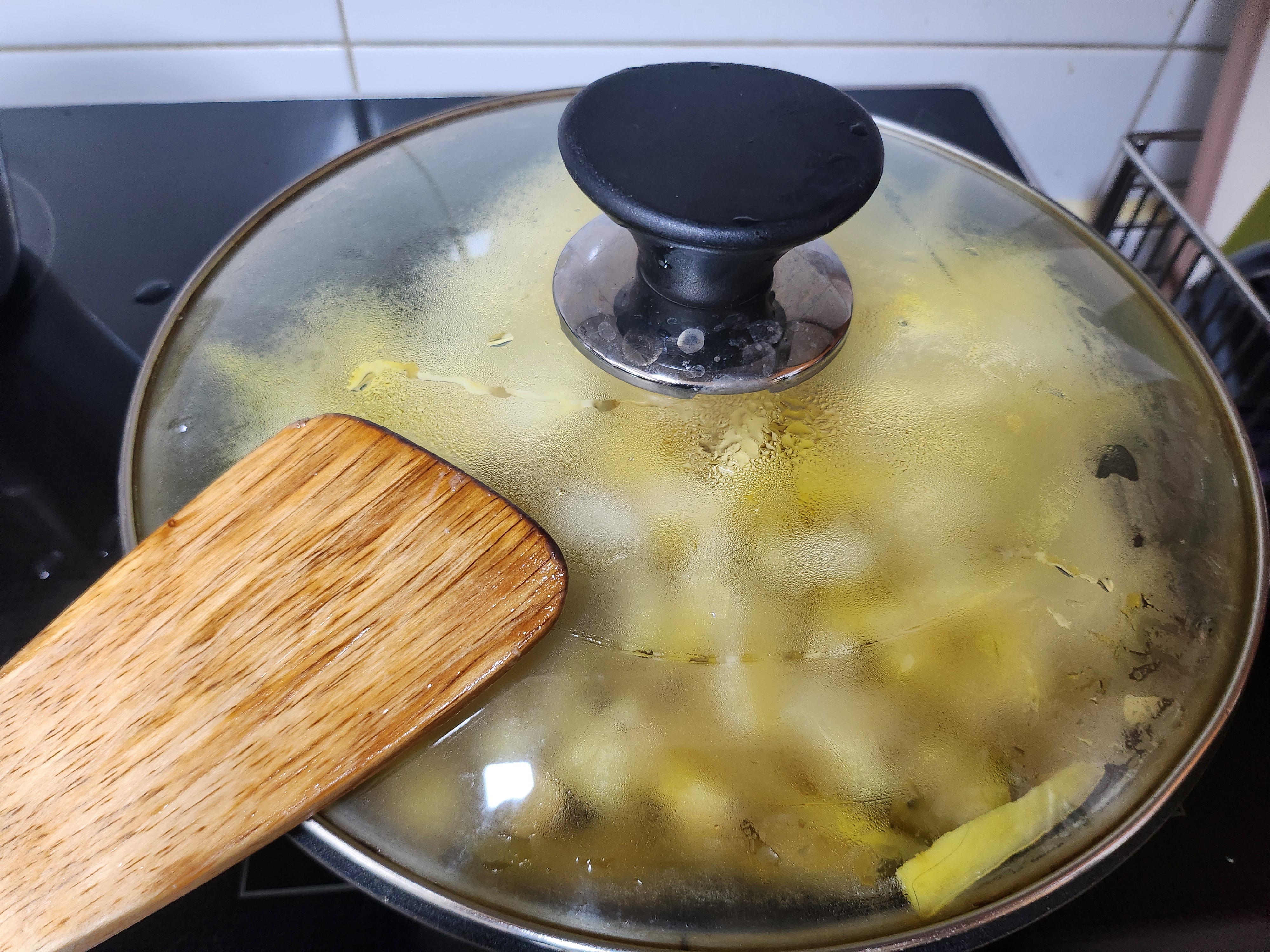 중간쯤 뚜껑을 닫아주면 골고루 잘 익습니다.