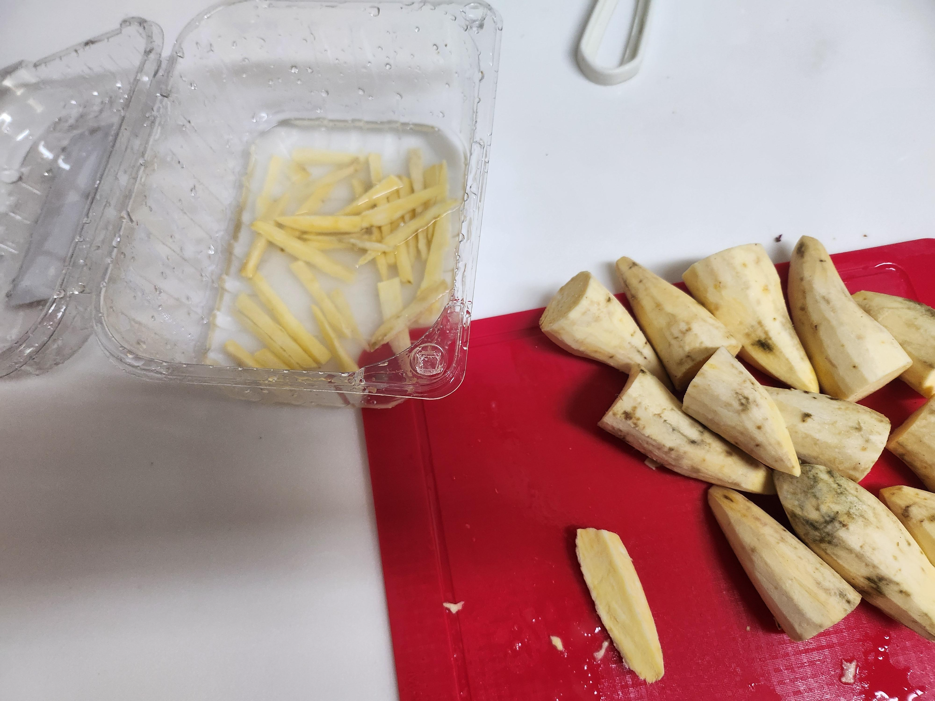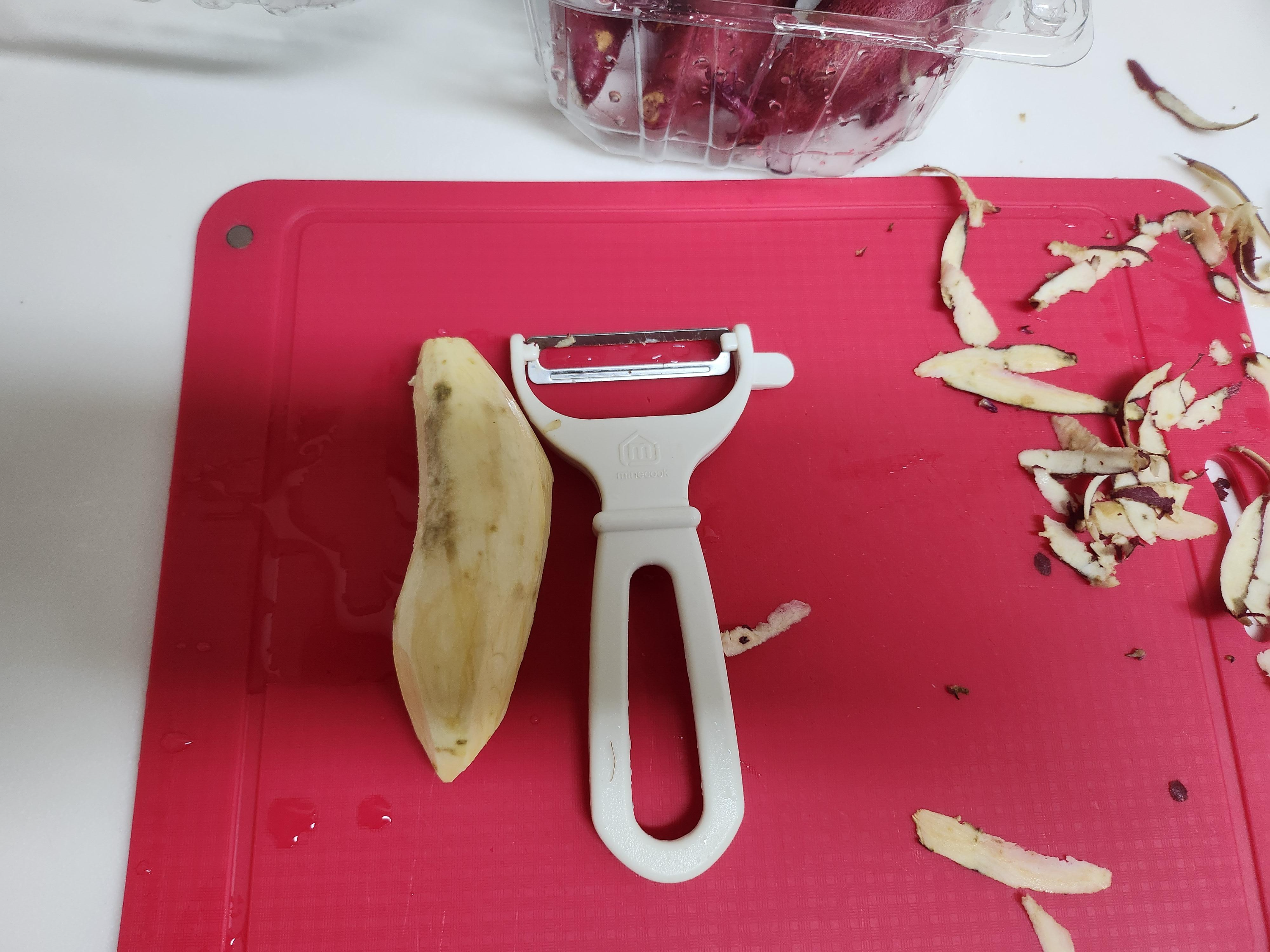 고구마를 씻고 먹기 좋게 잘라줍니다.