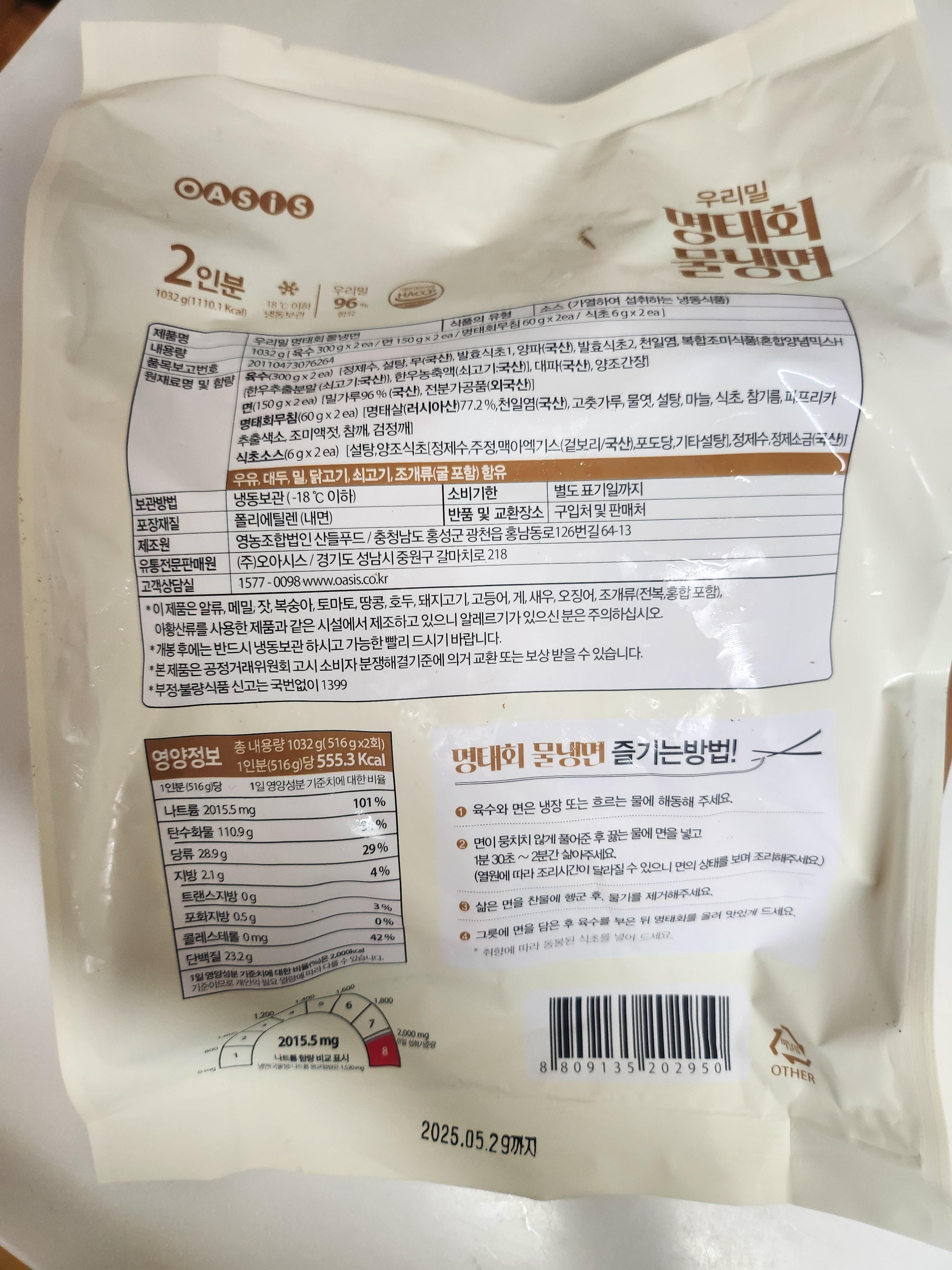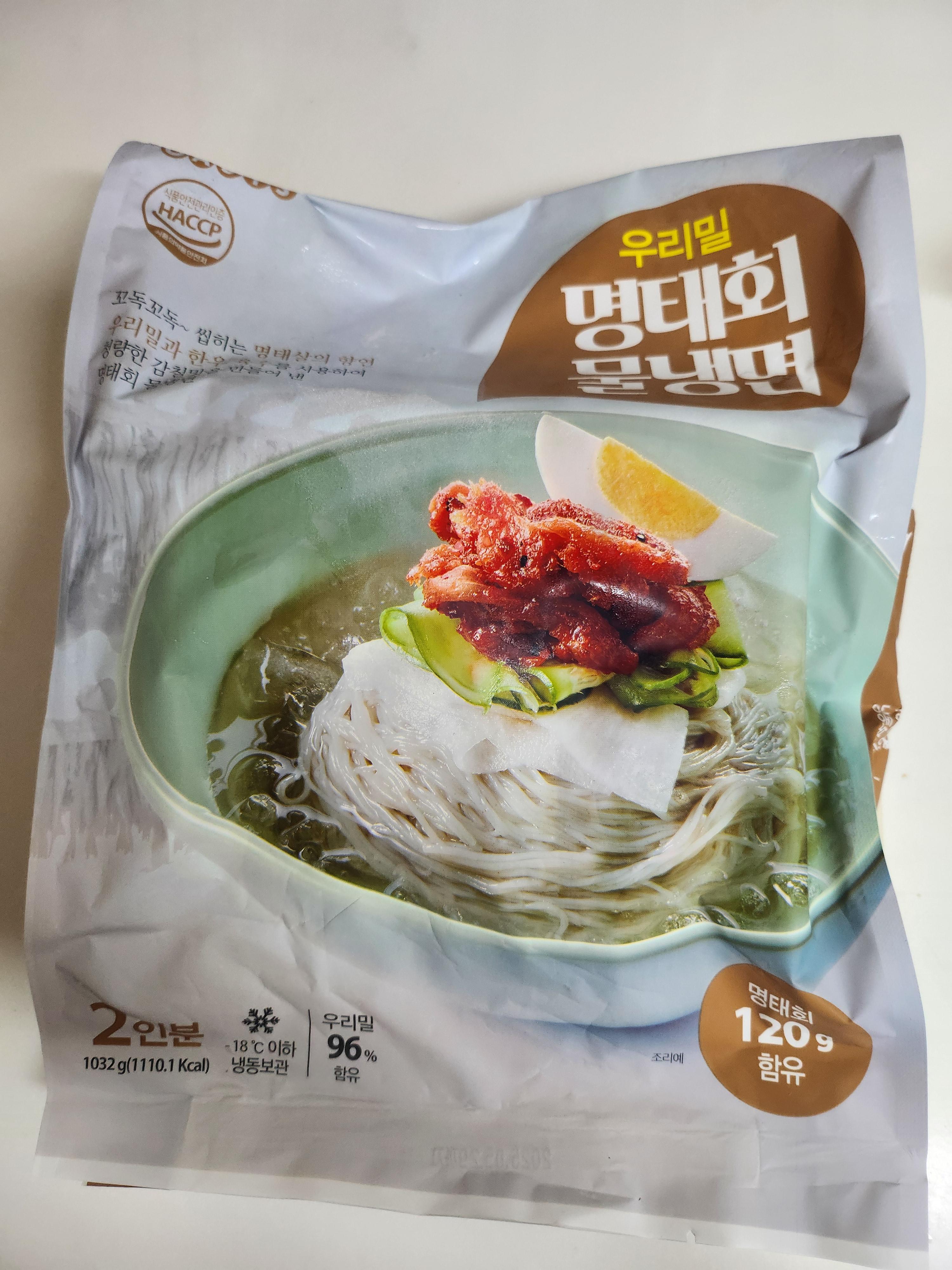 오아시스에서 우리밀 명태회물냉면을 구매해 먹었습니다.