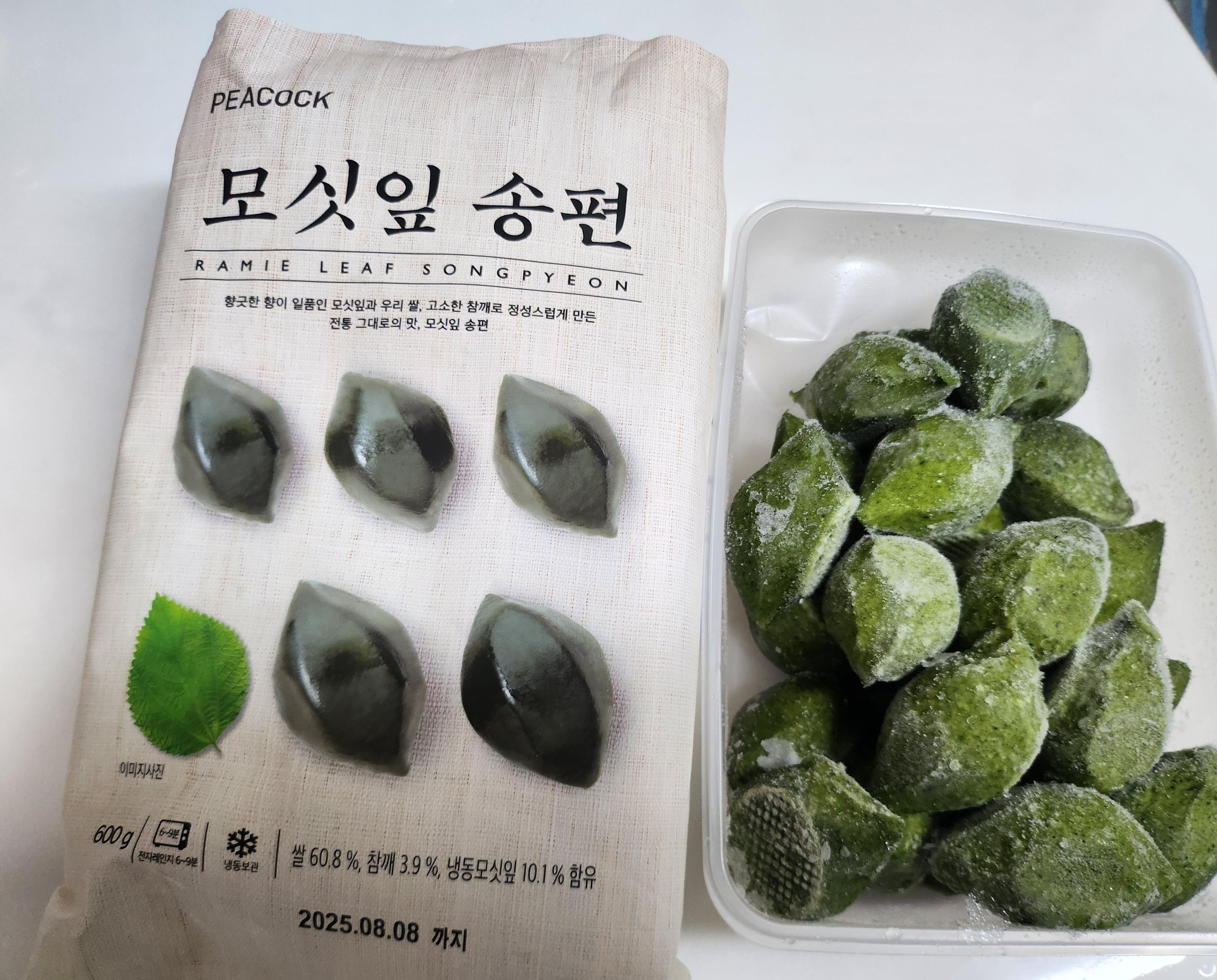 피코크에서 만든 모싯잎 송편을 먹었는데 맛있었습니다.