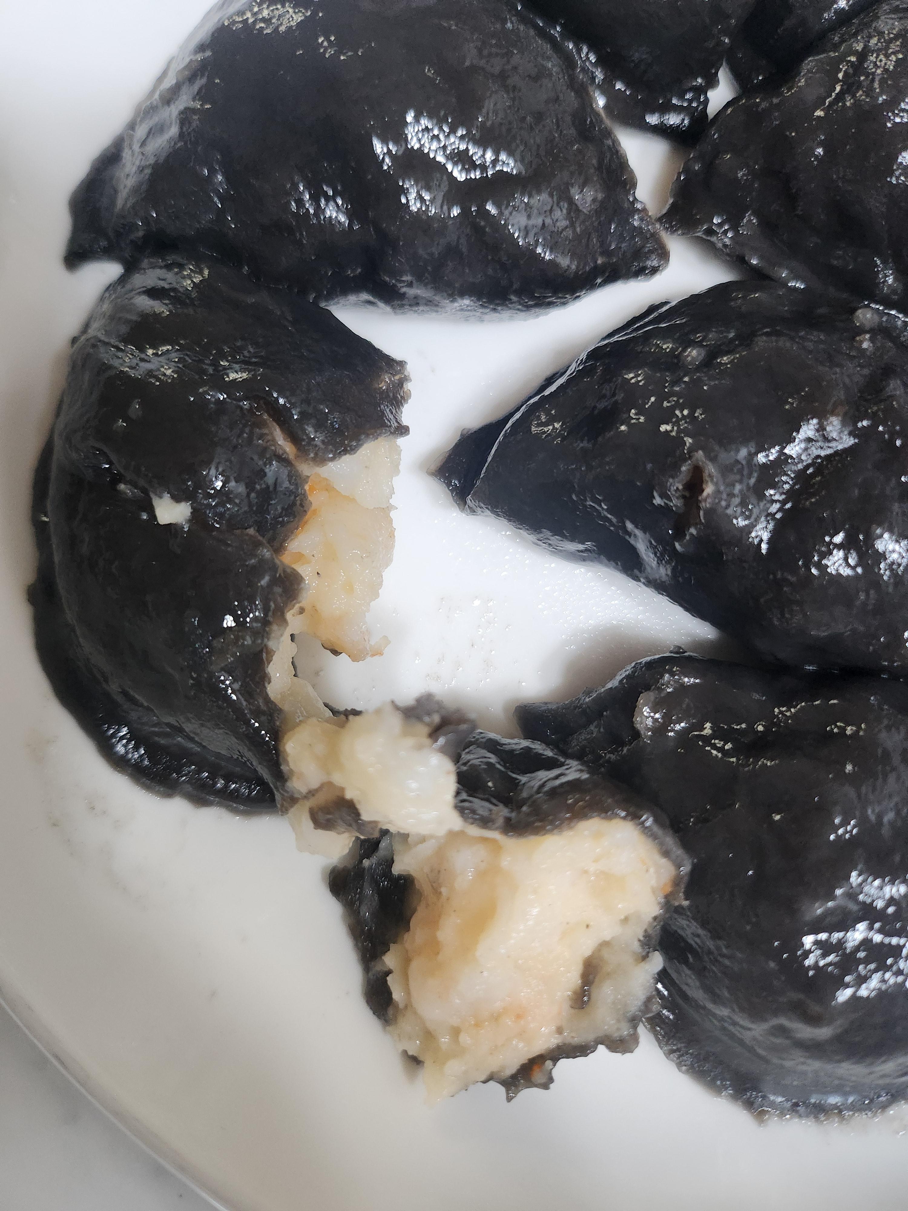 검은색 새우 딤섬 제품으로 쪄서 먹습니다.