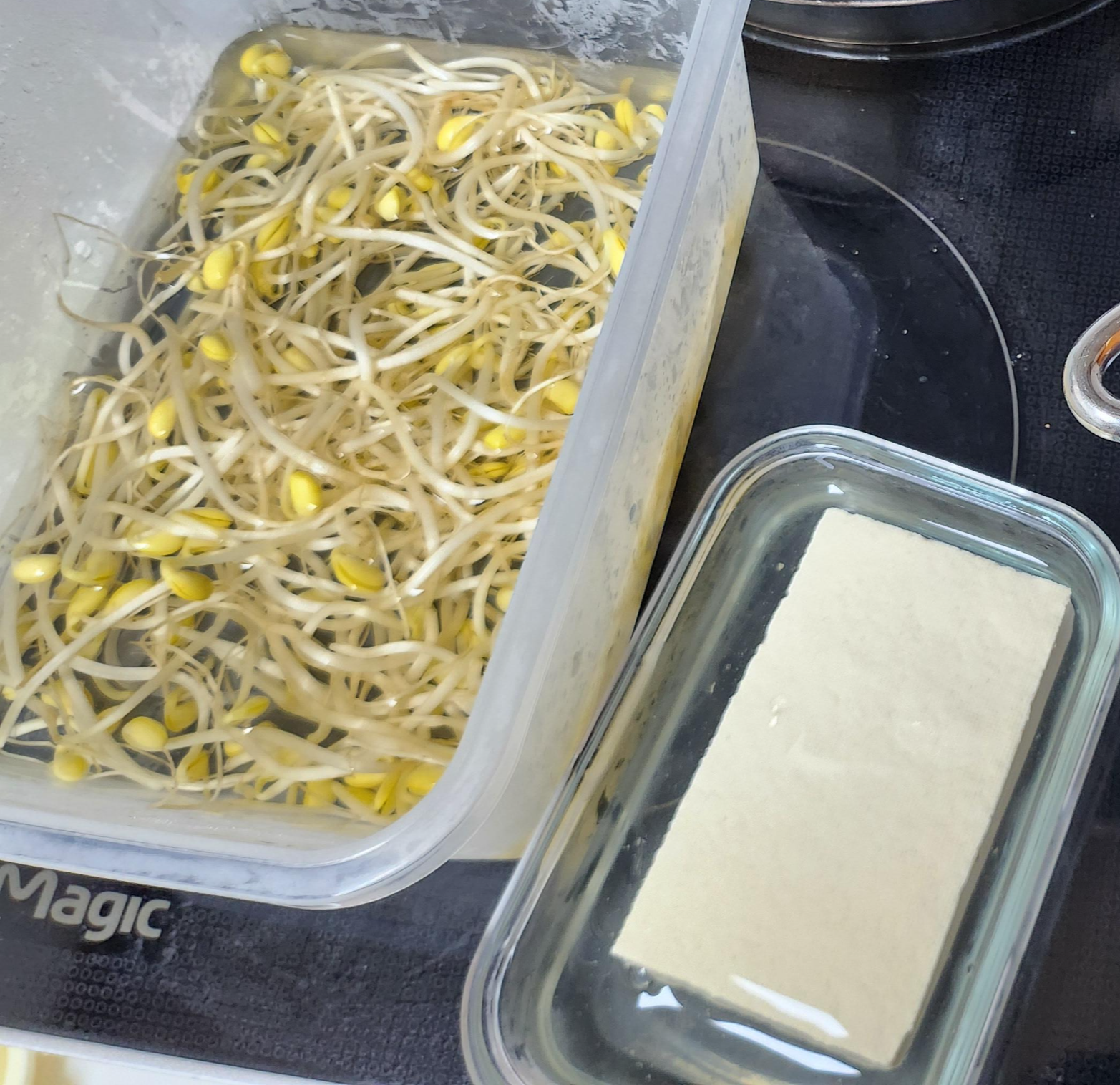 밀폐 용기에 콩나물이 잠길 정도의 물을 붓고 냉장보관하는 것입니다.