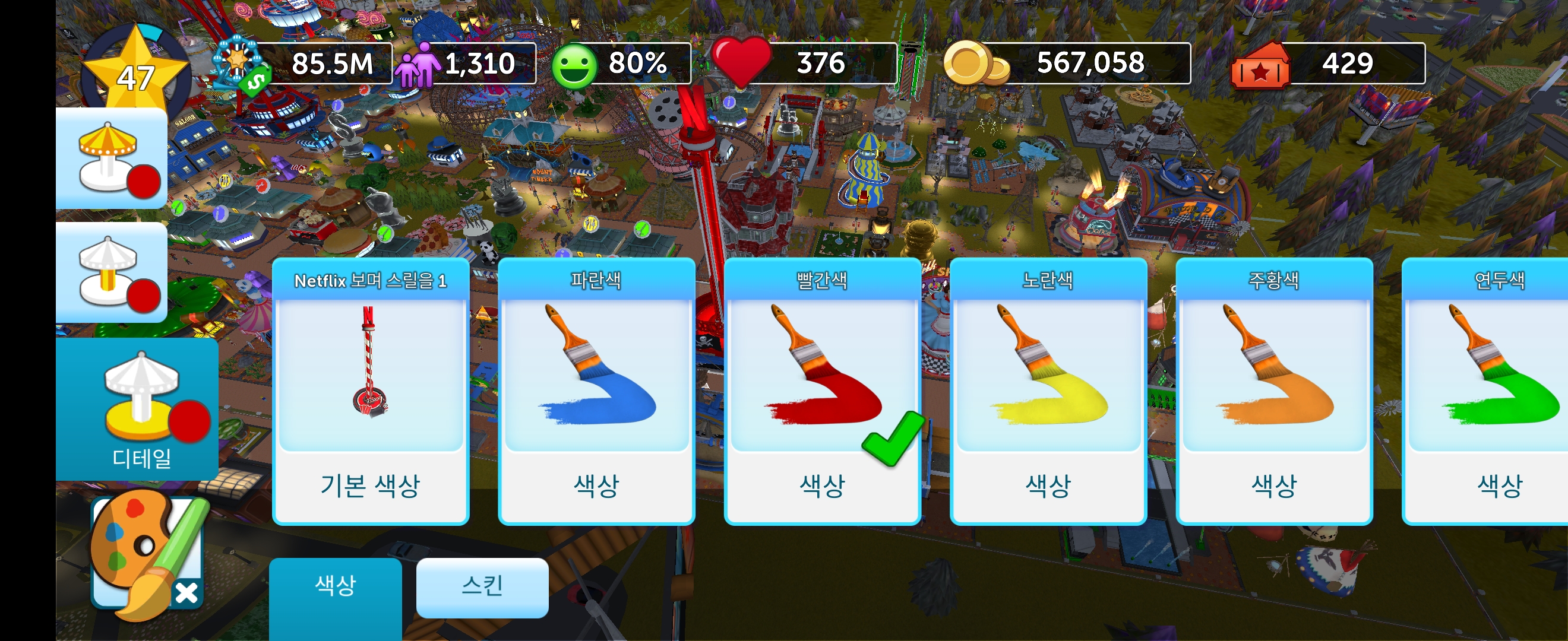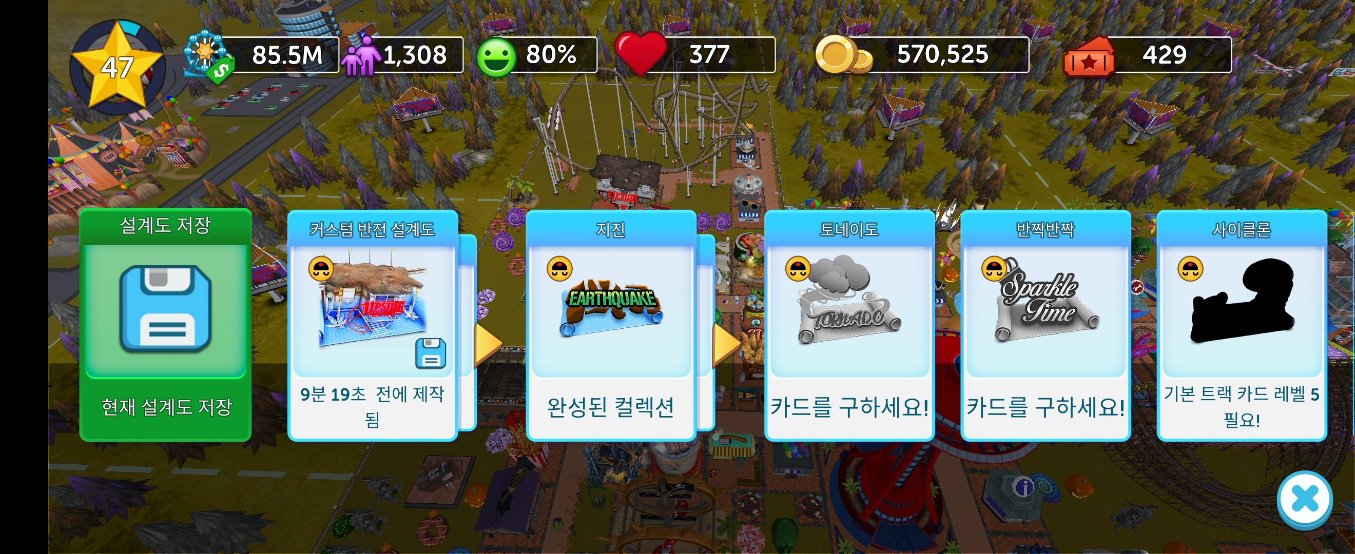어릴 적 즐겨했던 롤러코스터 타이쿤 게임을 모바일로 플레이했습니다.