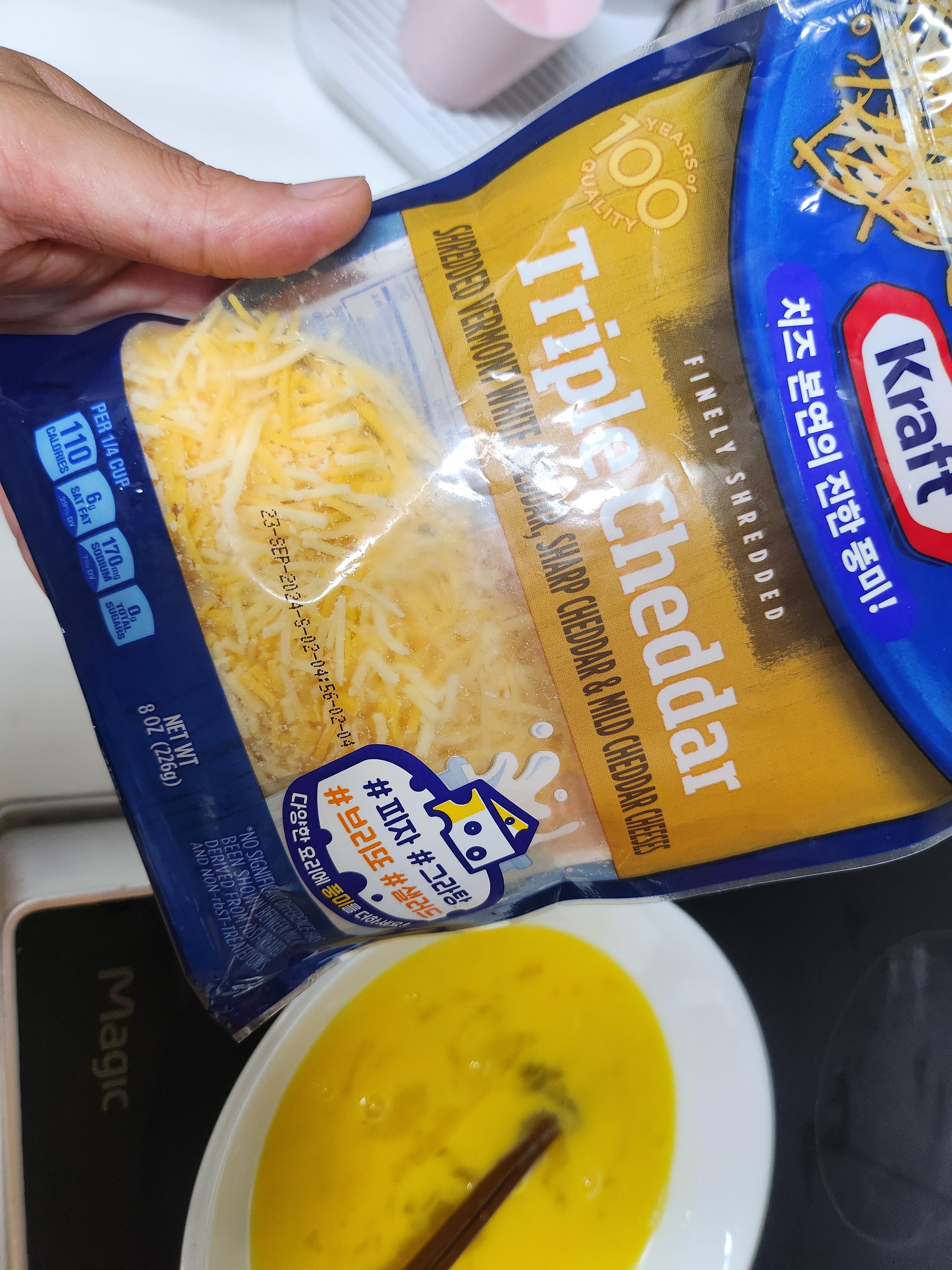 치즈는 체다치즈도 좋고 모짜랠라 피자치즈도 좋습니다.