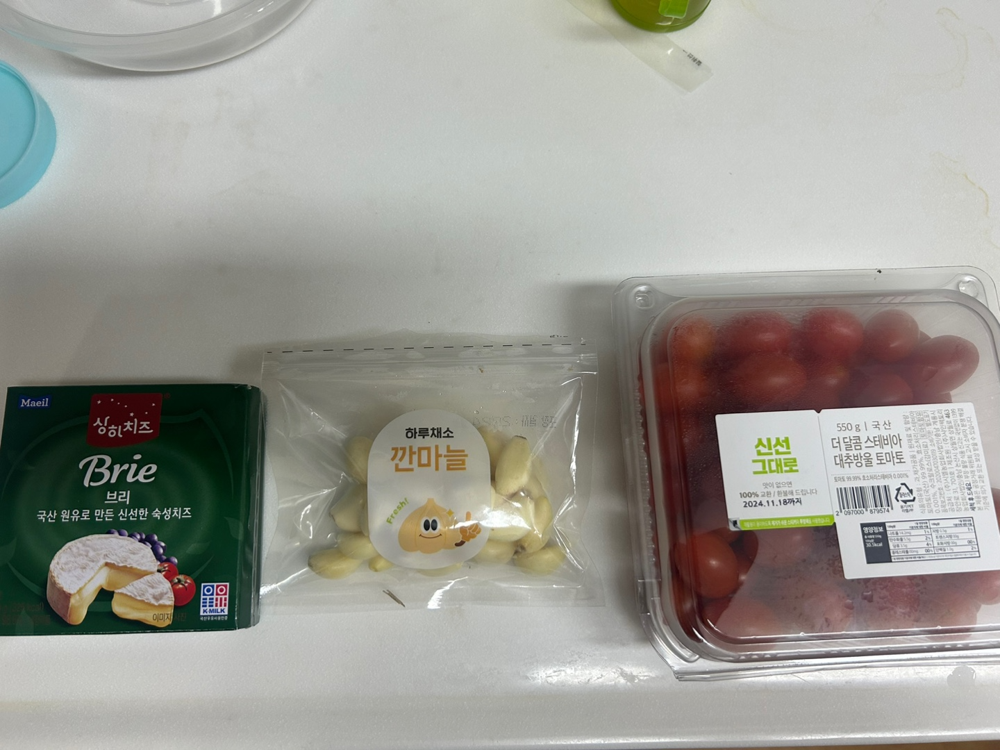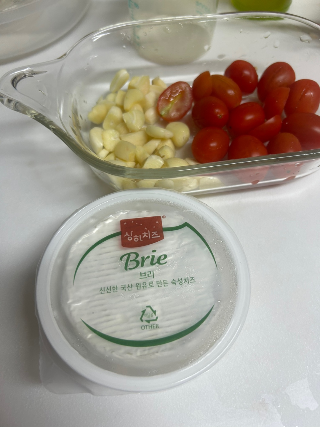 먼저 브리치즈와 깐 마늘, 스테비아 토마토를 준비합니다.