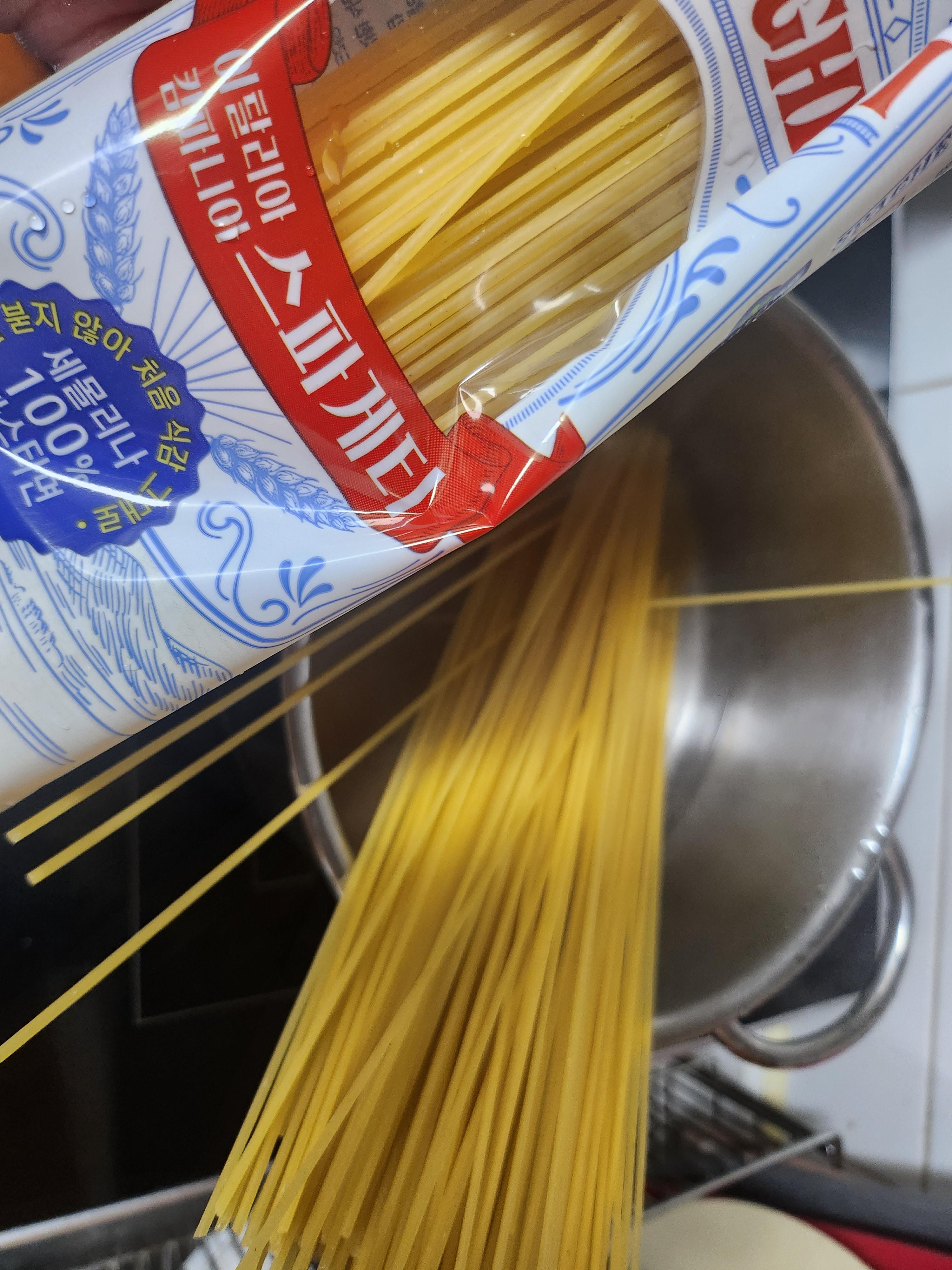 삶을때는 소금을 살짝 넣고 삶습니다.