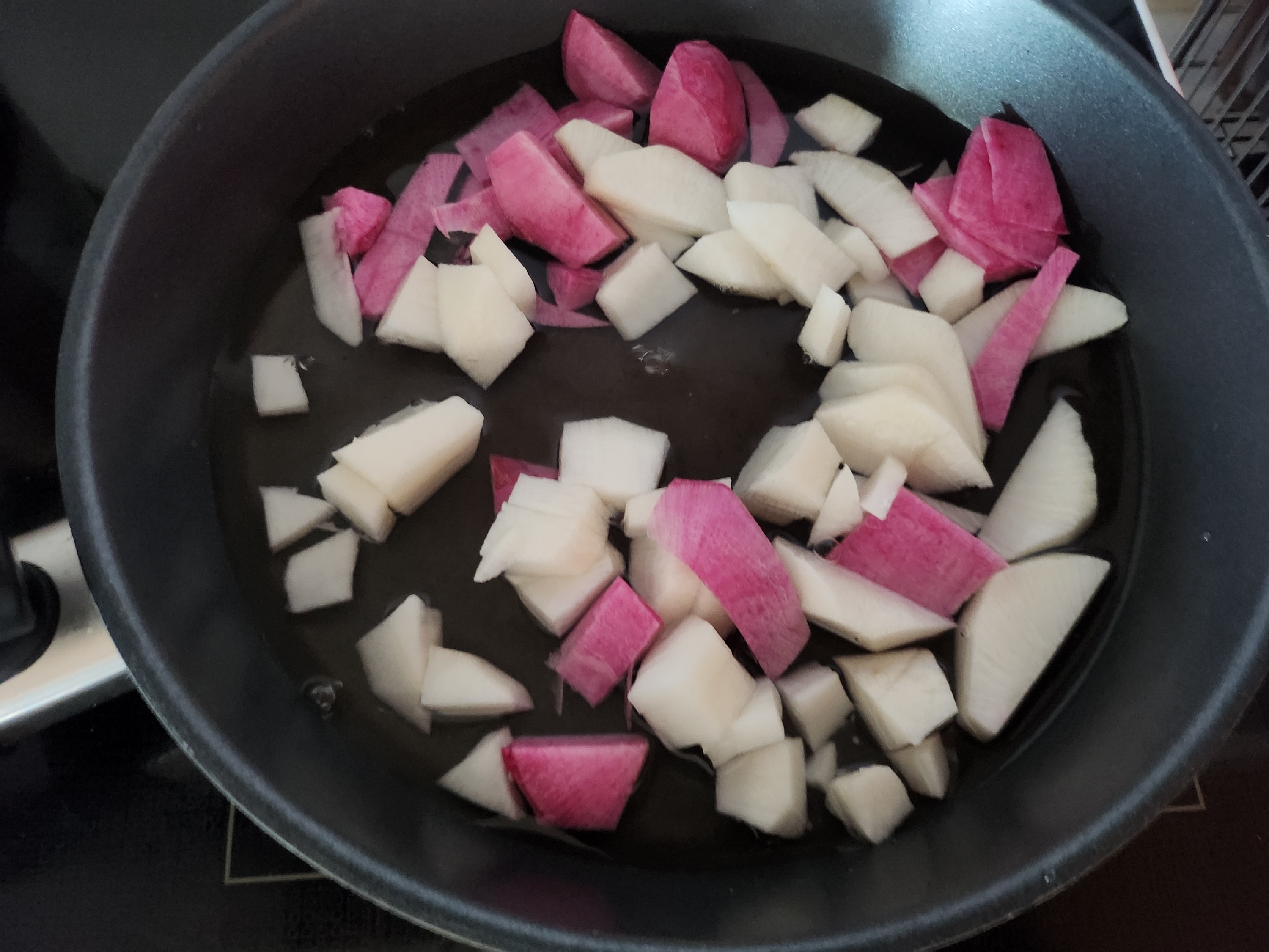 그러면 무도 투명해지면서 무를정도로 부드럽게 익혀집니다.