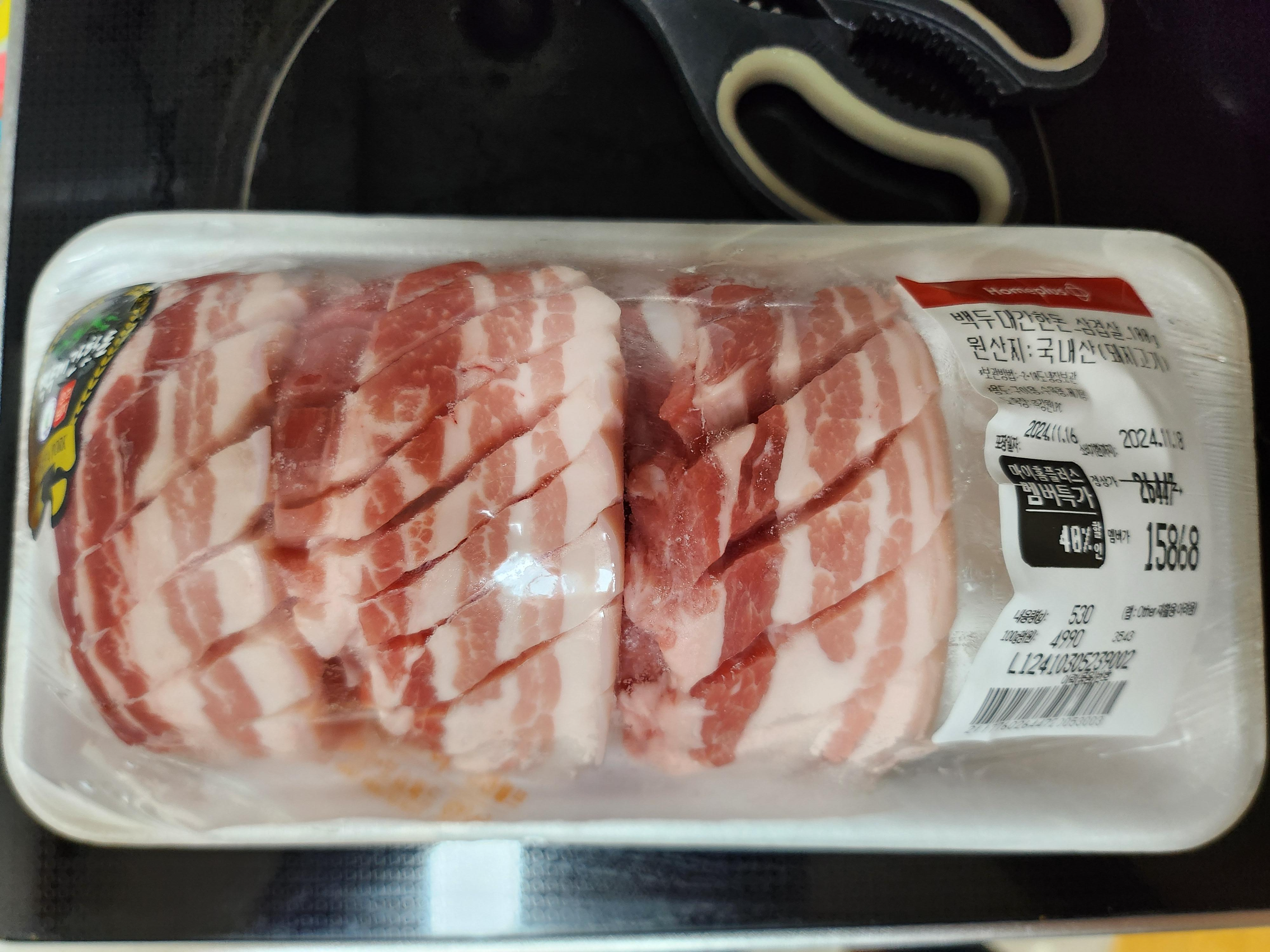며칠 후 홈플러스에서 삼겹살을 사서 먹었습니다.