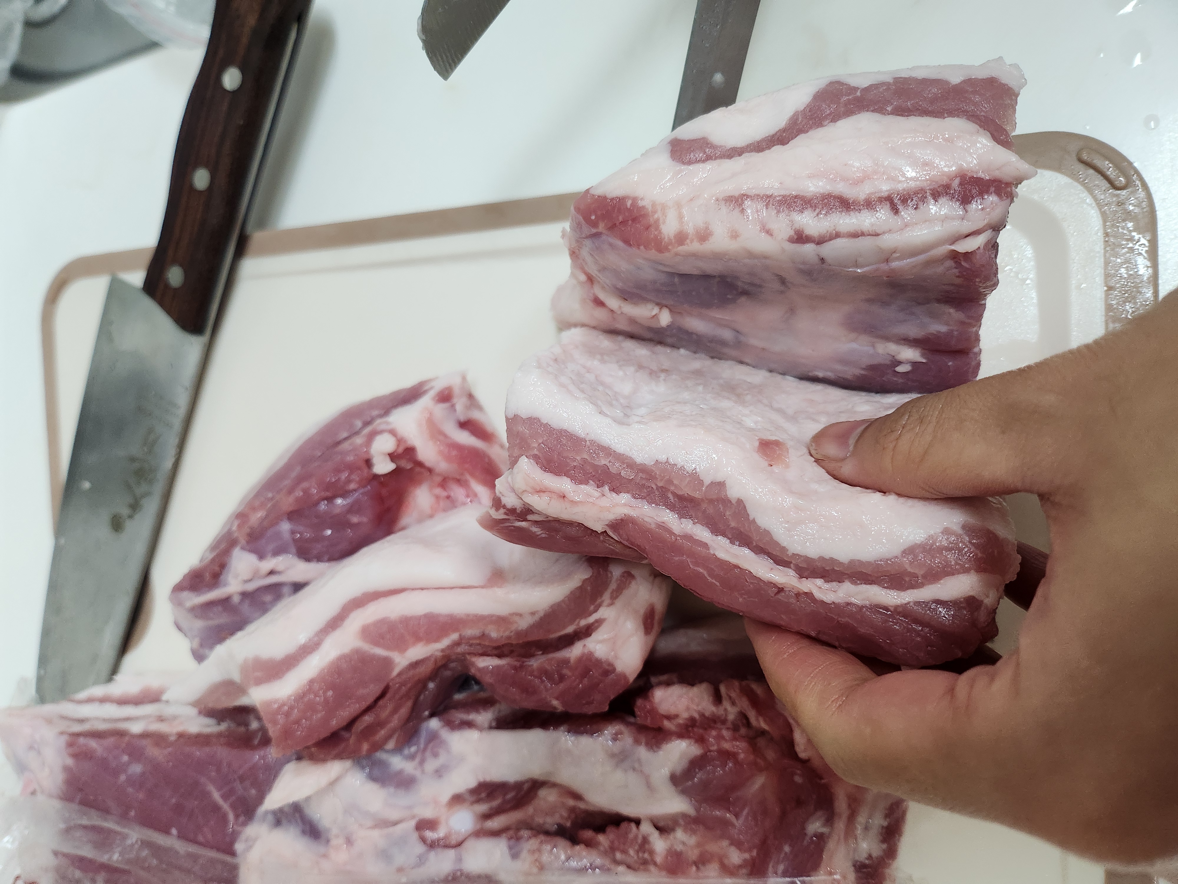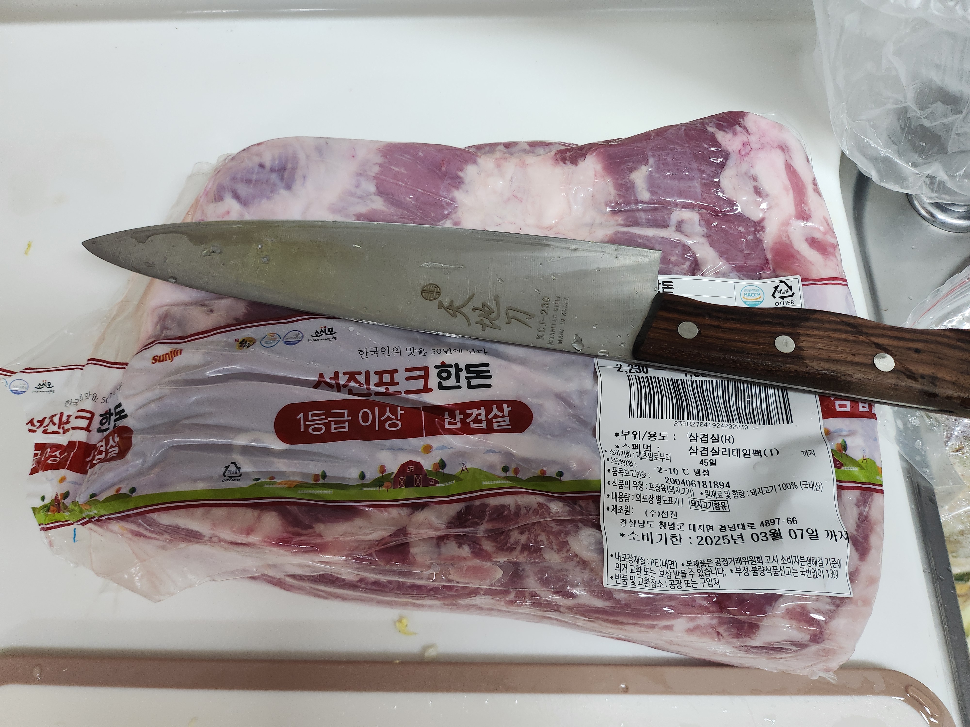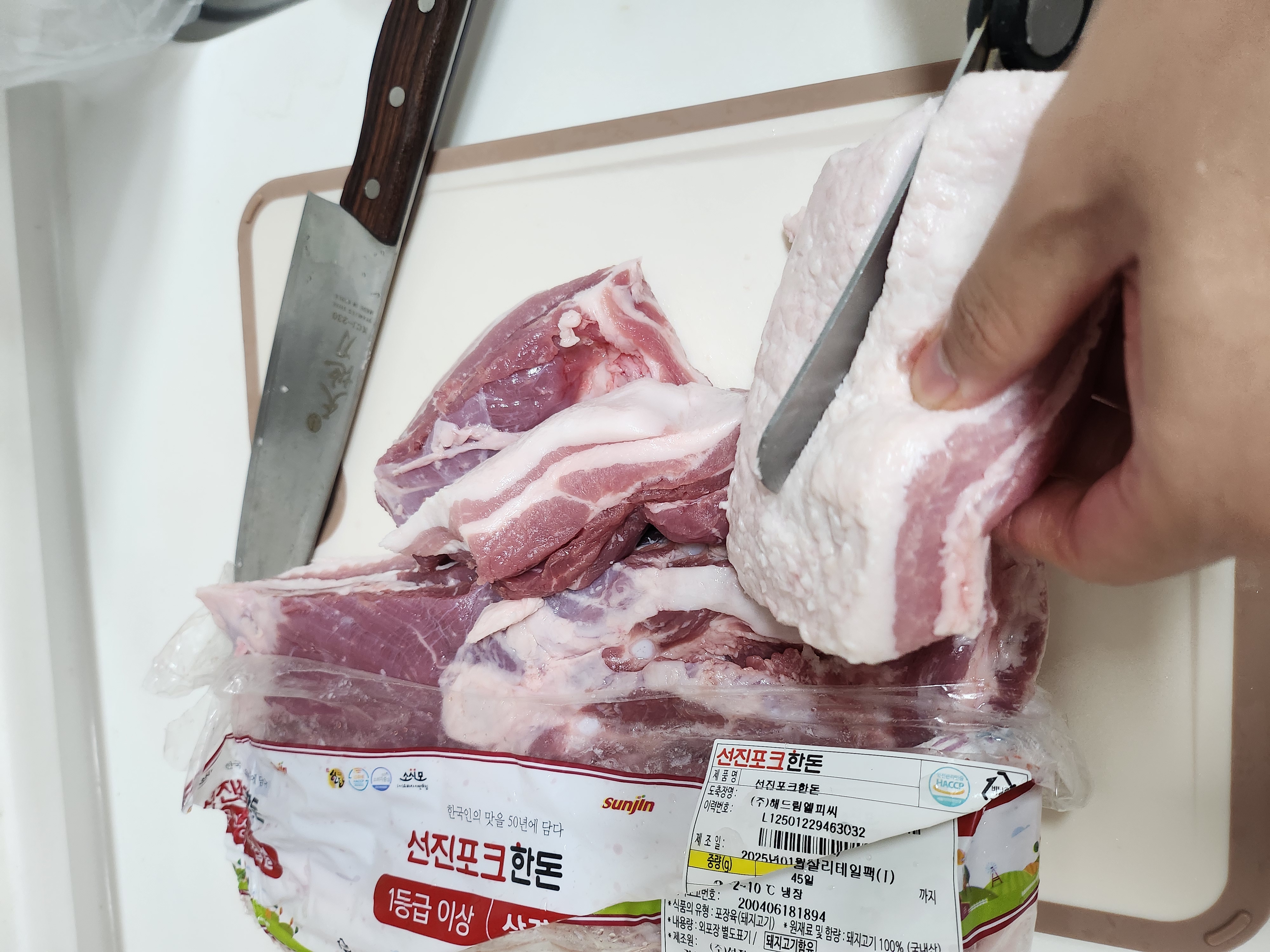 트레이더스에서 수육을 만들기 위해 삼겹살을 샀습니다.