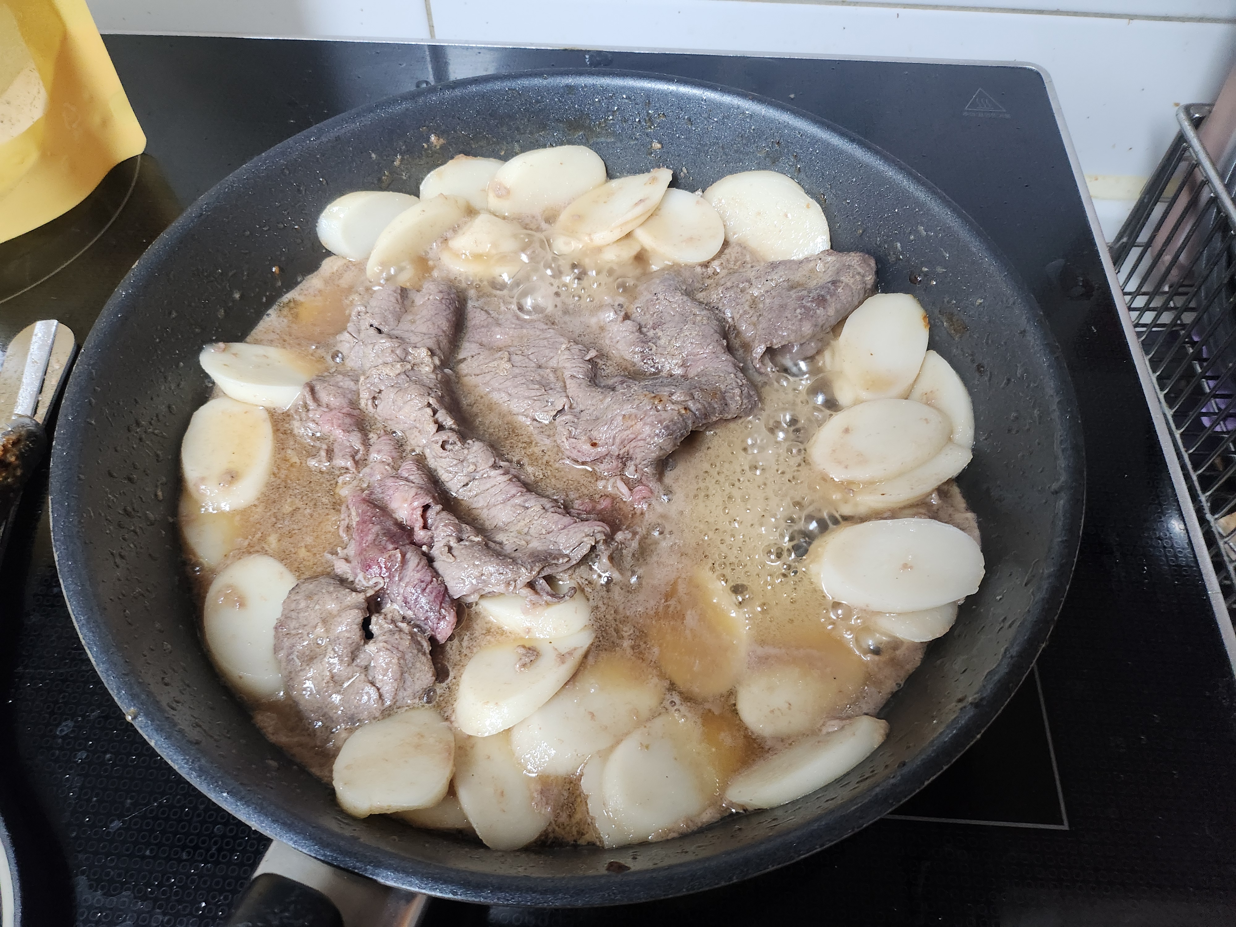 남은 고기 양념으로 불고기를 해 먹으면 간편하고 좋습니다.