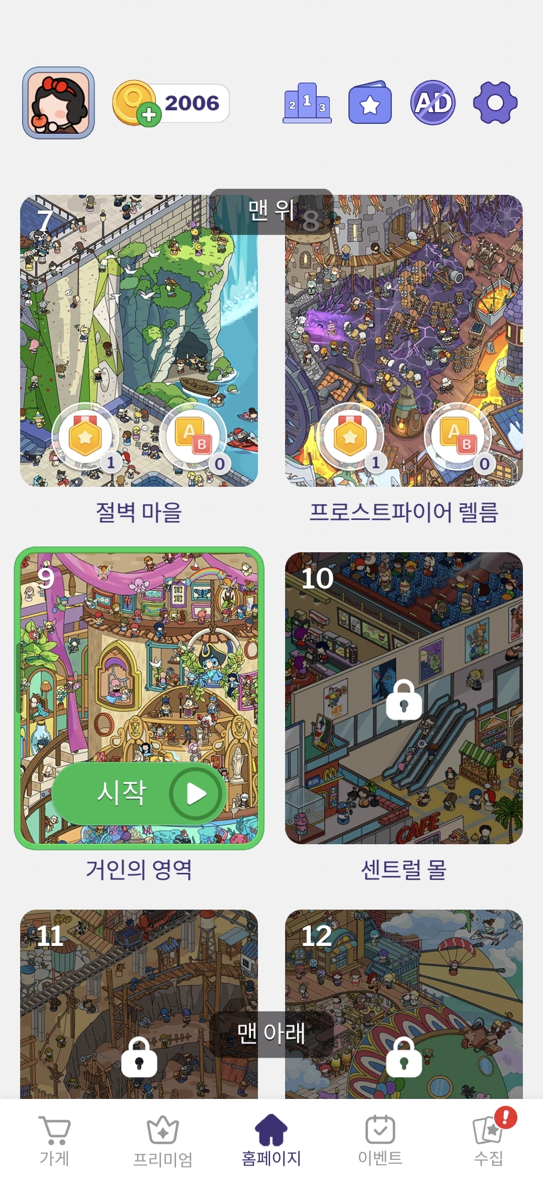 돋보기 아이템 활용: 도저히 못 찾겠다면 광고를 시청하고 힌트(돋보기)를 얻는 것이 정신 건강에 이롭습니다.
