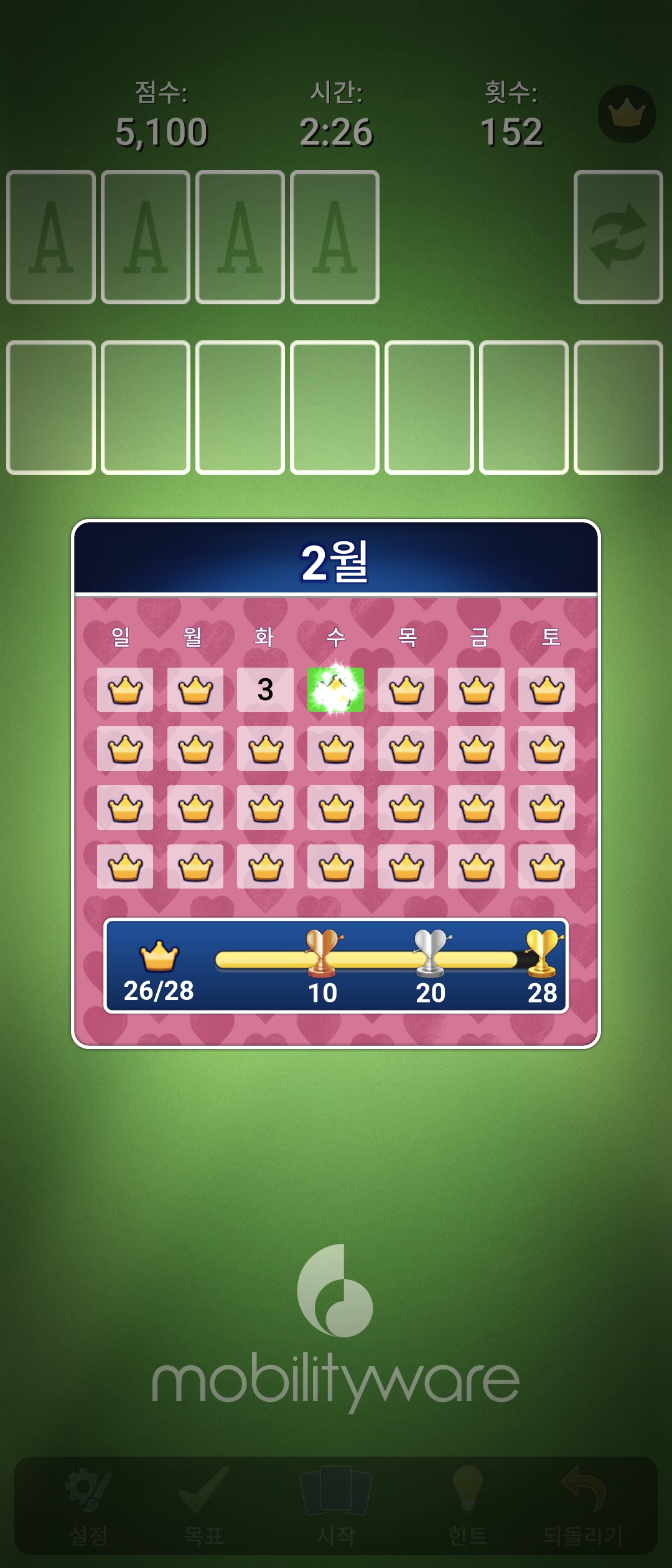 도저히 다음 수가 보이지 않을 때 이 기능을 사용해 보세요. AI가 어떤 순서로 카드를 옮겨야 이길 수 있는지 직접 보여줍니다. 몇 번 따라 하다 보면 고수들만 아는 카드 이동 패턴을 자연스럽게 익힐 수 있습니다.