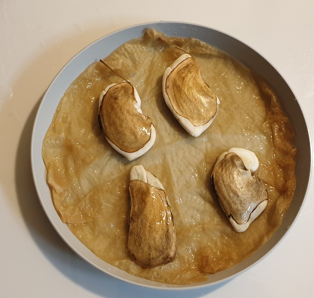 망고 씨앗을 올리고 다시 키친타월로 덮어줍니다.