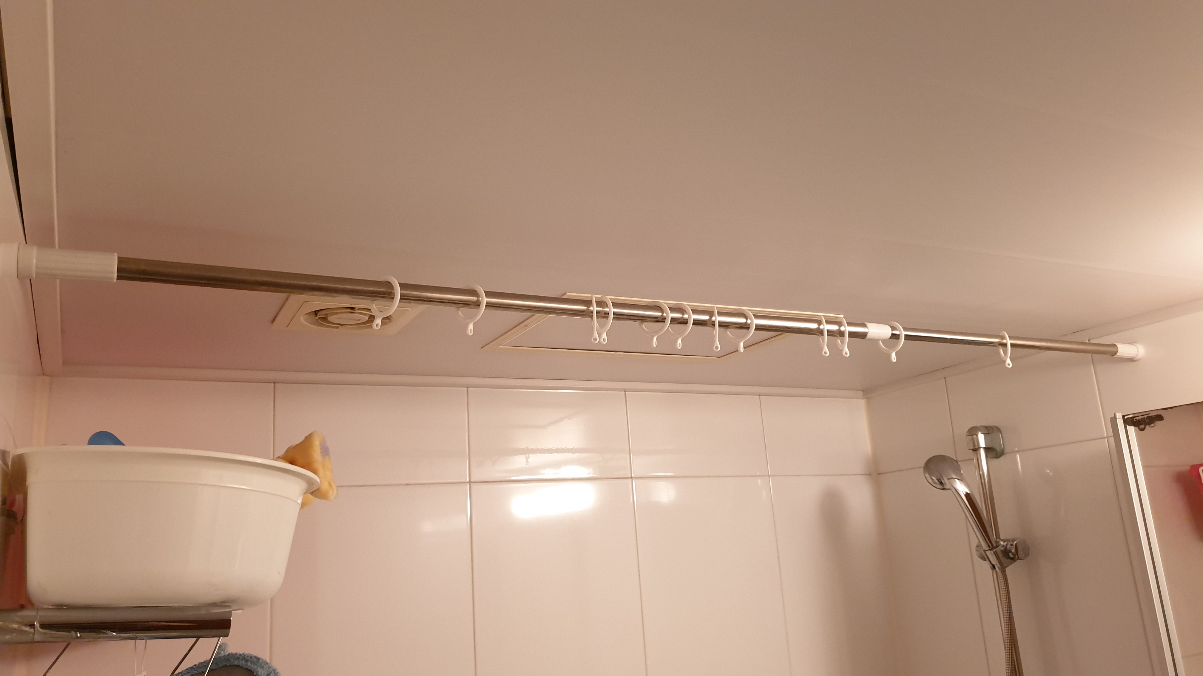 집에 안 쓰는 커튼 압축봉(다이소 구입?)이 있어서 활용하고자 샤워 커튼을 설치했다.