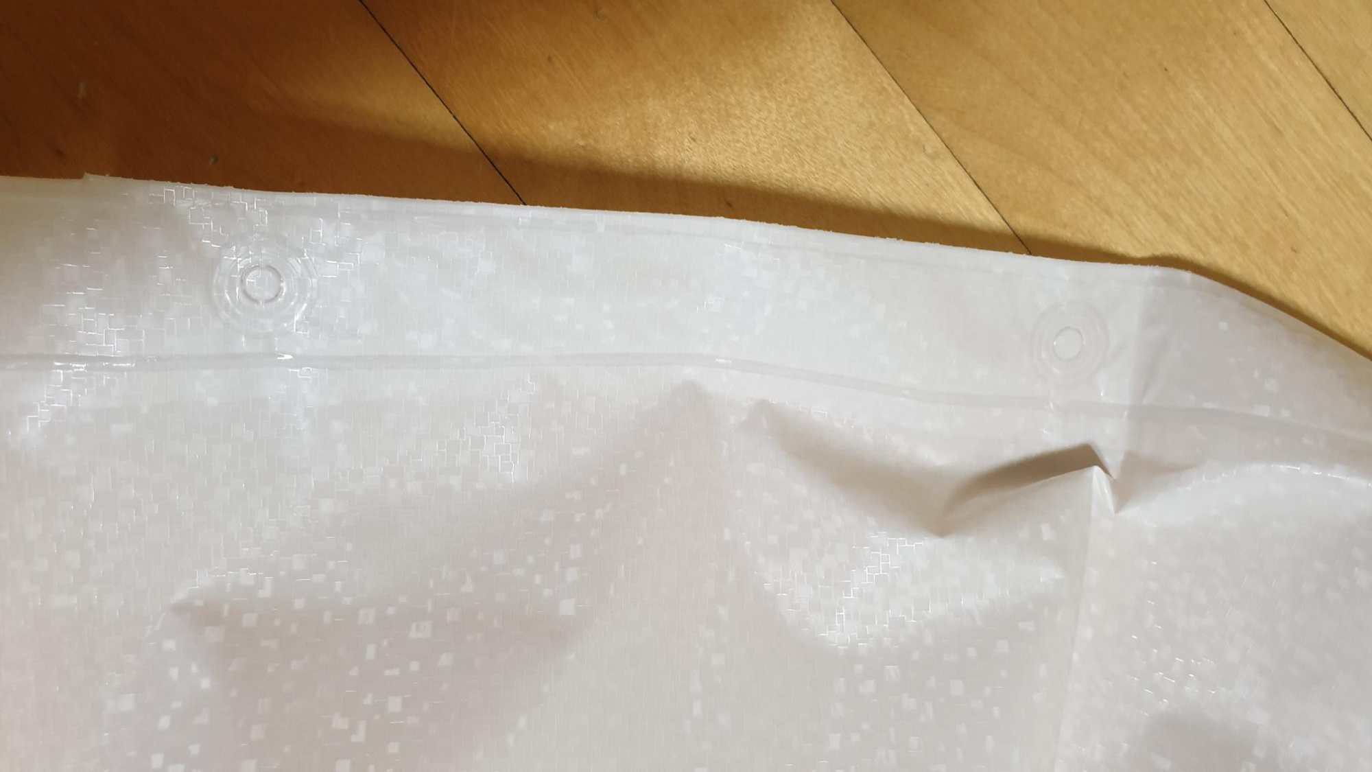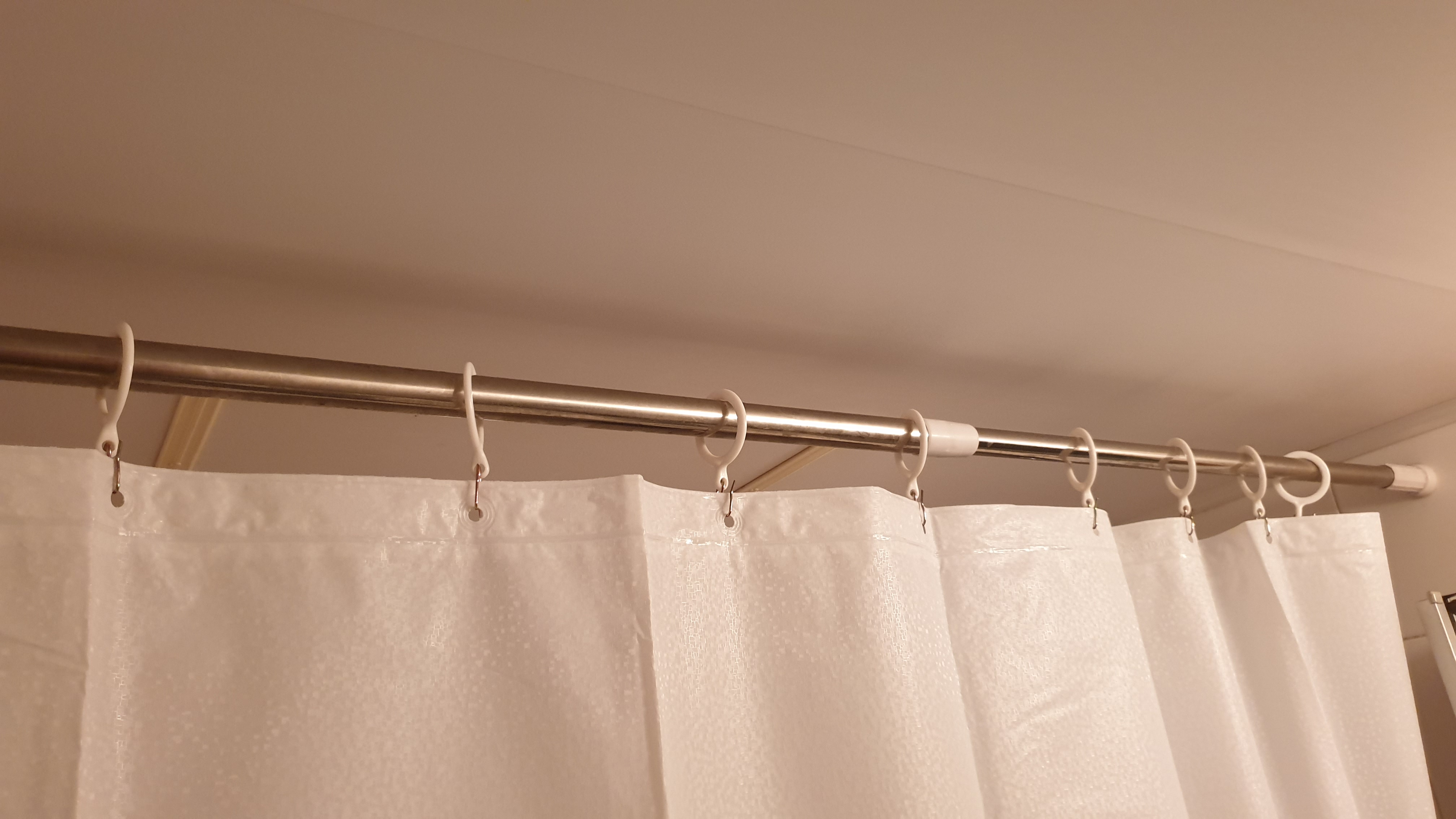 샤워 커튼 상단에는 12개의 구멍이 있었고 우연히도 커튼봉에도 12개의 고리가 있었다.