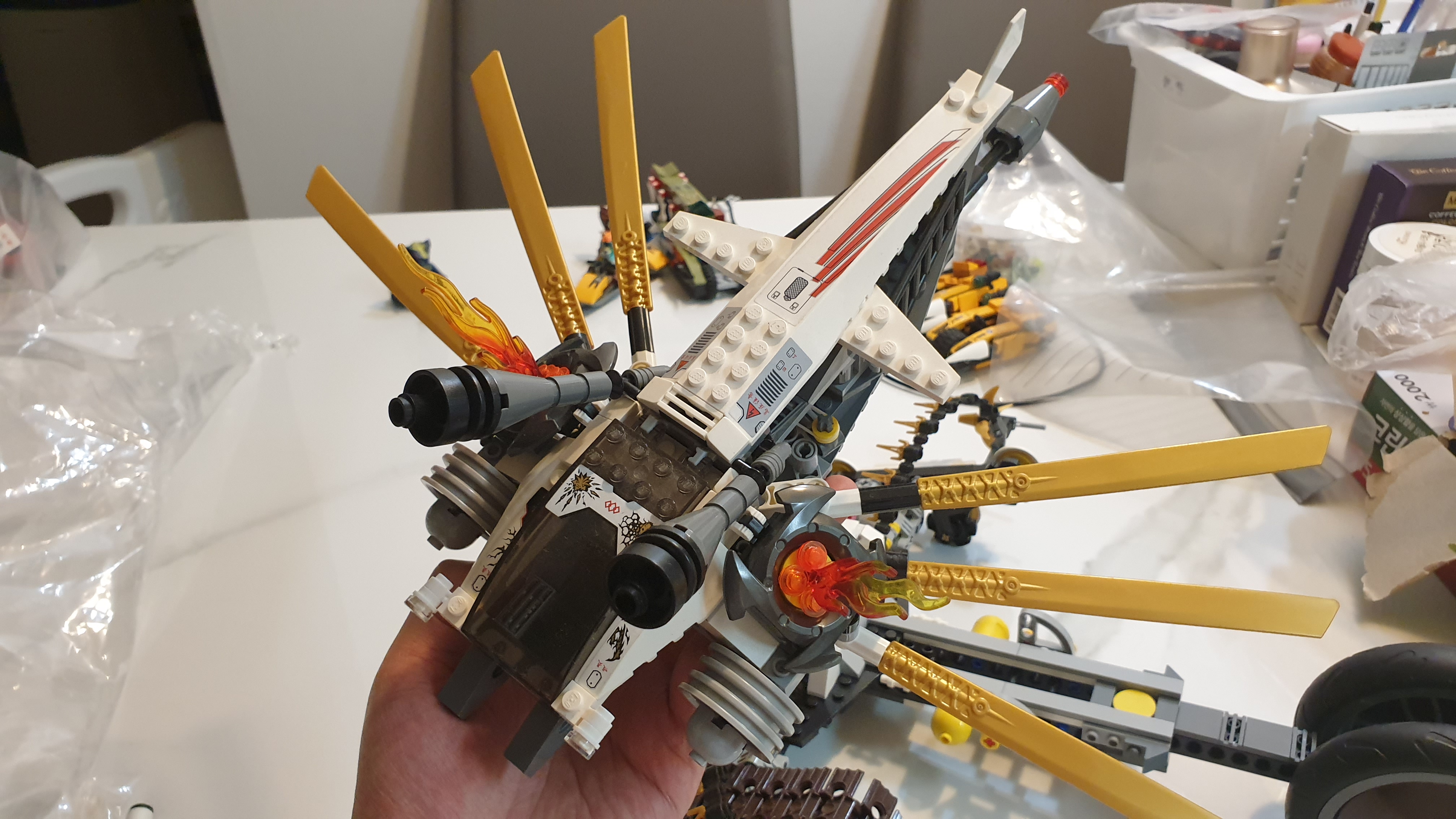 뒤에 꼬리를 누르면 비행선의 6개 날개가 활짝펴집니다.