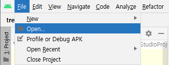 1) File > Open > 해당 프로젝트의 android 선택하여 오픈