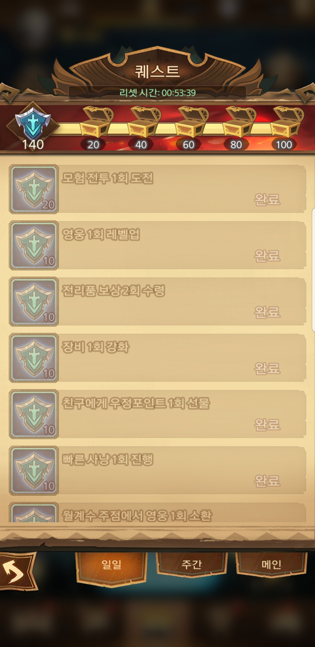 나는 정말 하루에 15분 정도 들어가서 일일 퀘스트 밖에 안 한다.
