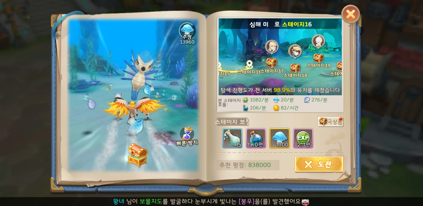펫을 일정시간동안 보물찾기로 보내면 유료 재화인 다이아를 얻는다.