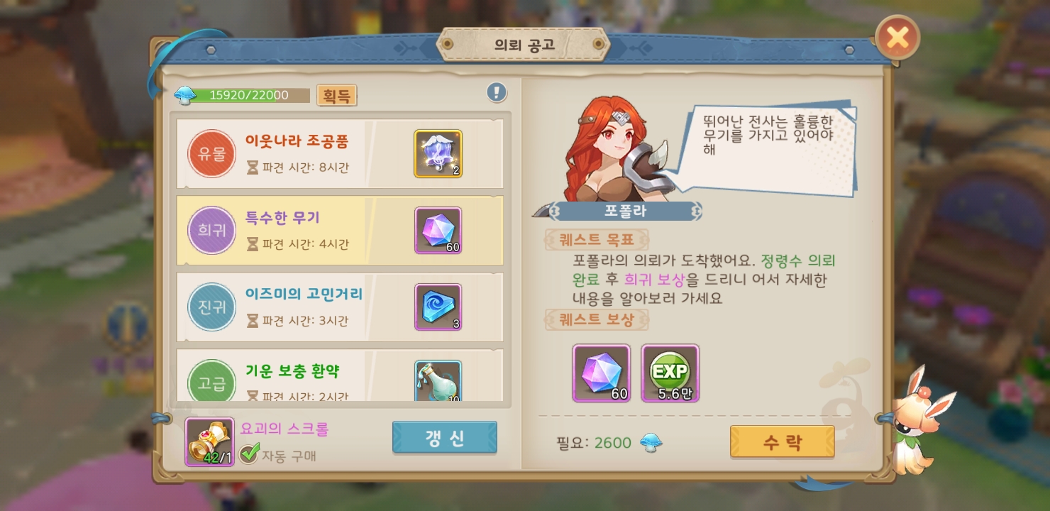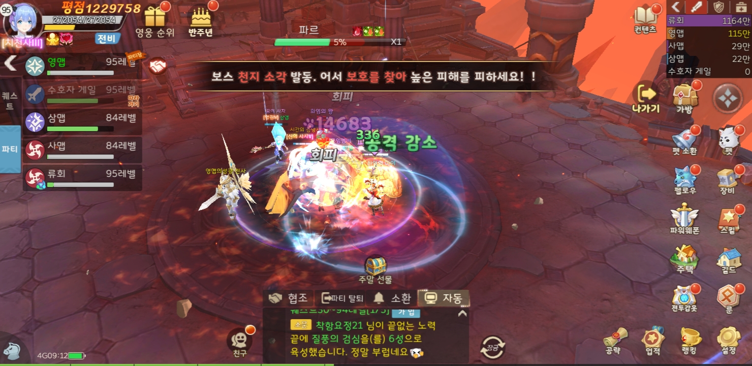 대부분 콘텐츠에서 자동전투를 지원하고 있고 퀘스트도 2인 파티가 가능하여 성장하면서 막히는 부분이 거의 없다.