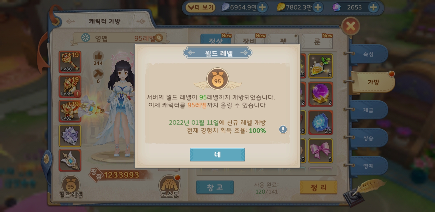 나는 부케 3개를 의도적으로 84레벨을 유지하여 최상위권 랭킹을 만들어 상당한 보상을 챙기고 있다.